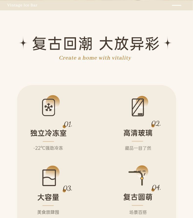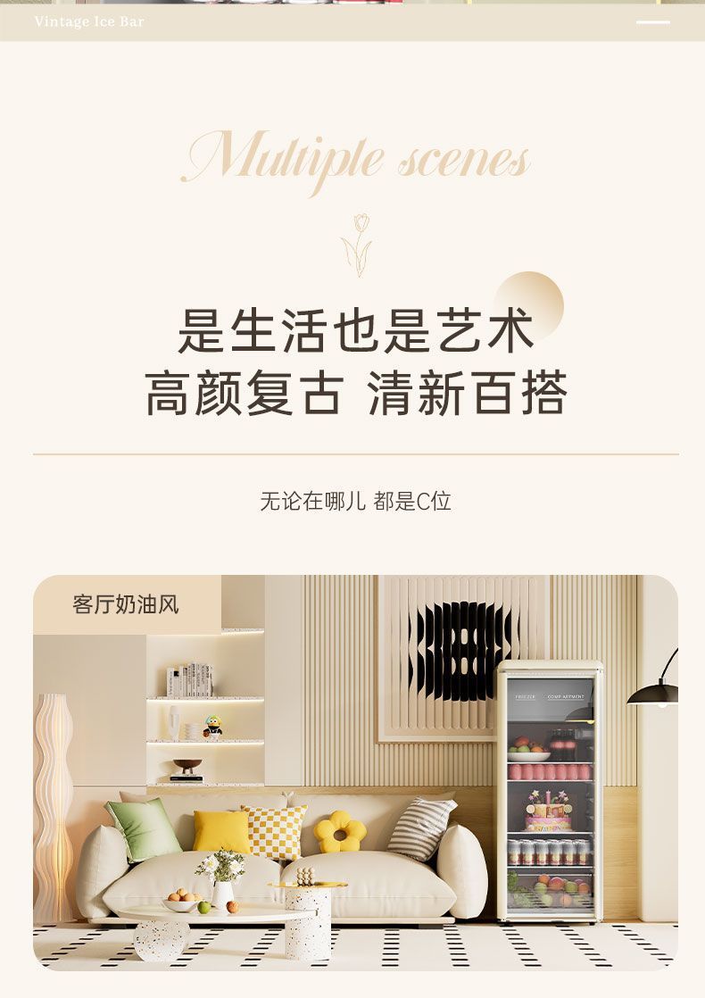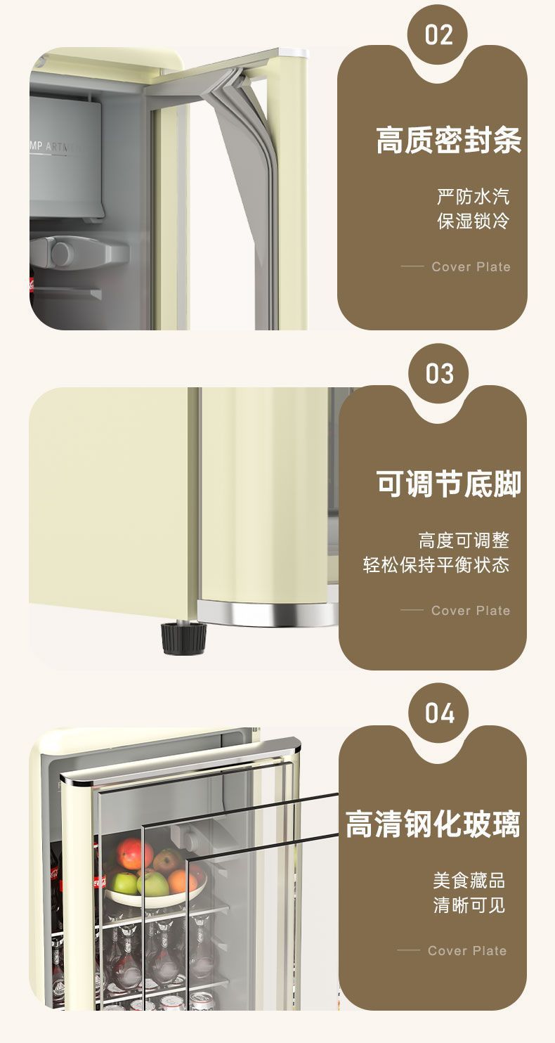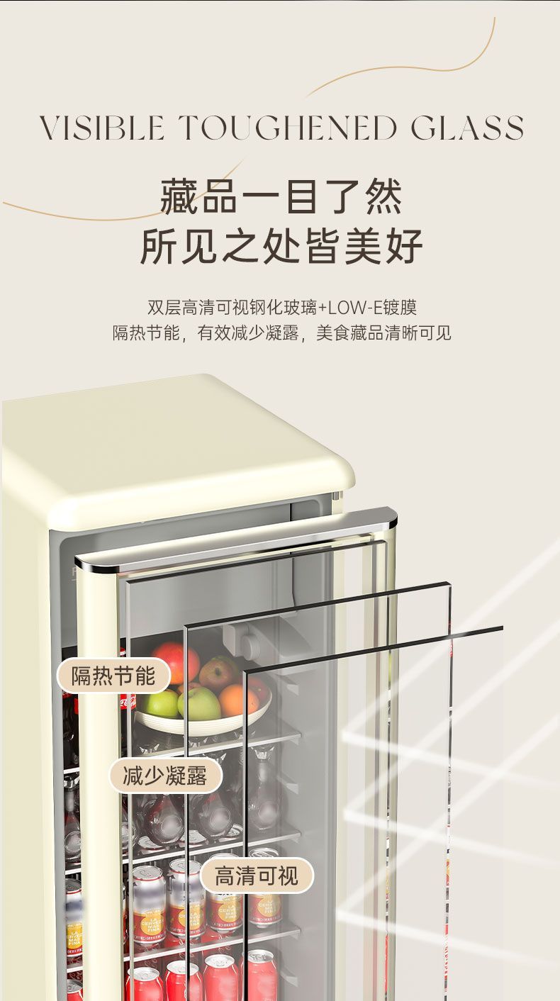 Royalstar 레트로 아이스 바 홈 소형 냉장 디스플레이 캐비닛 유리 도어 냉장고 사무실 차 음료 보존스토어 가기