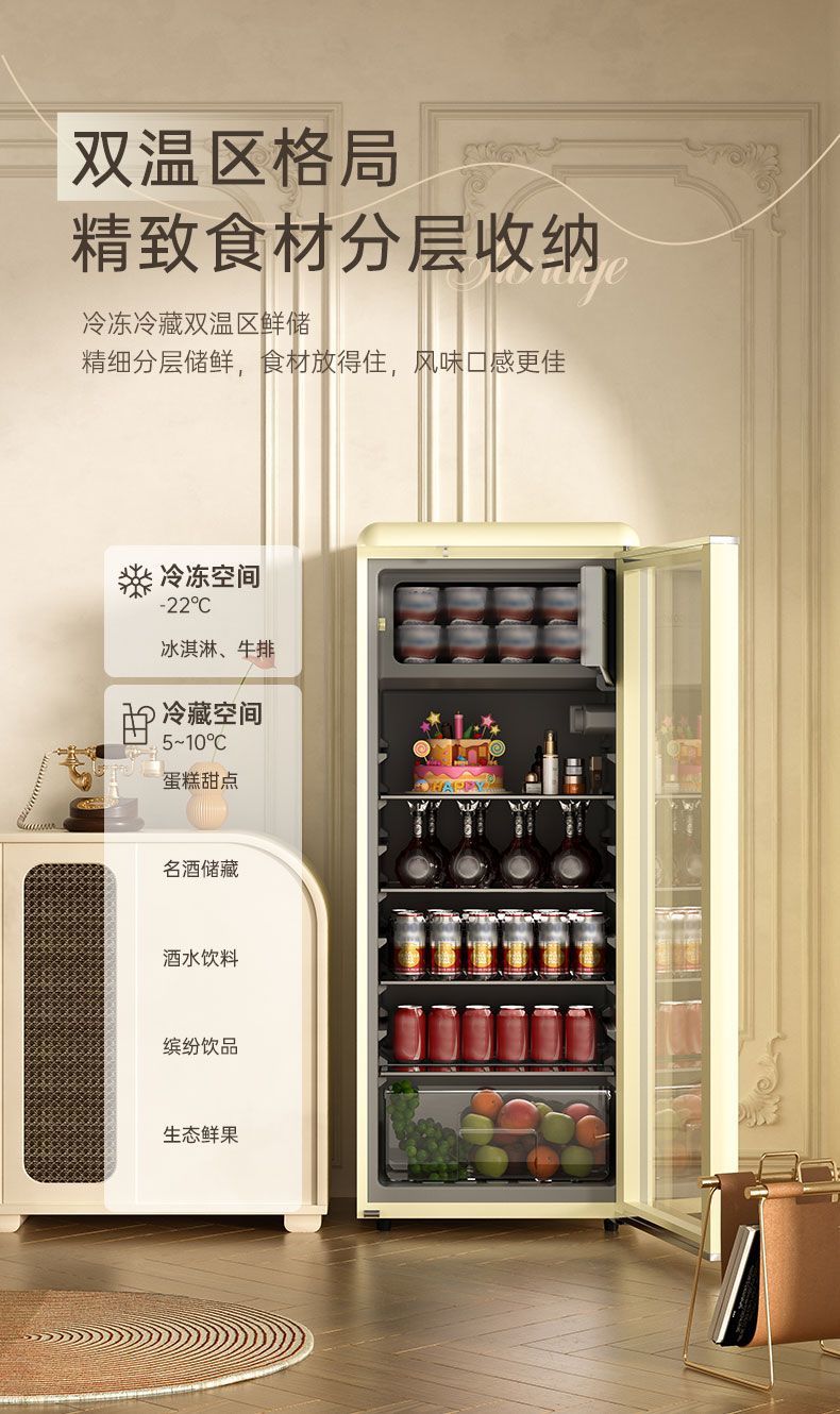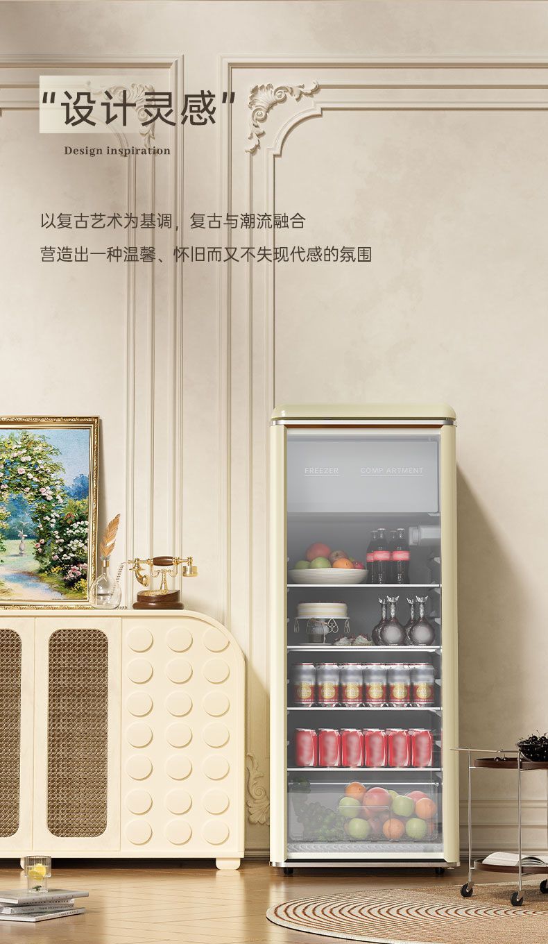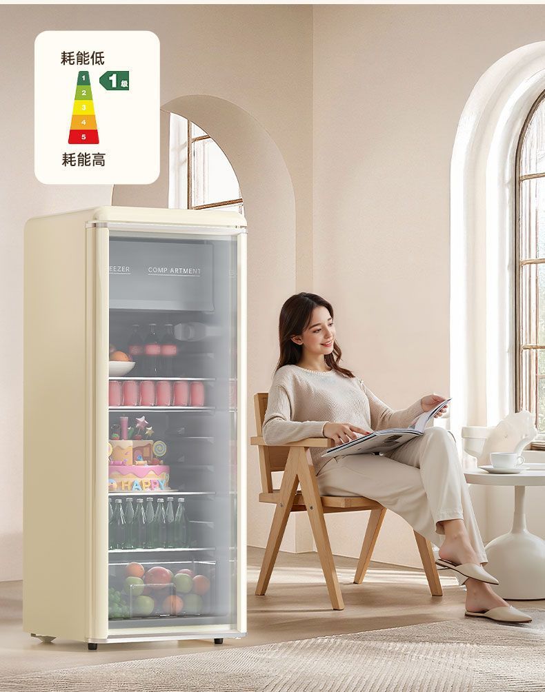 • 198리터 레트로 화이트 완전 냉장 1단계 에너지 절약 + LED 조명