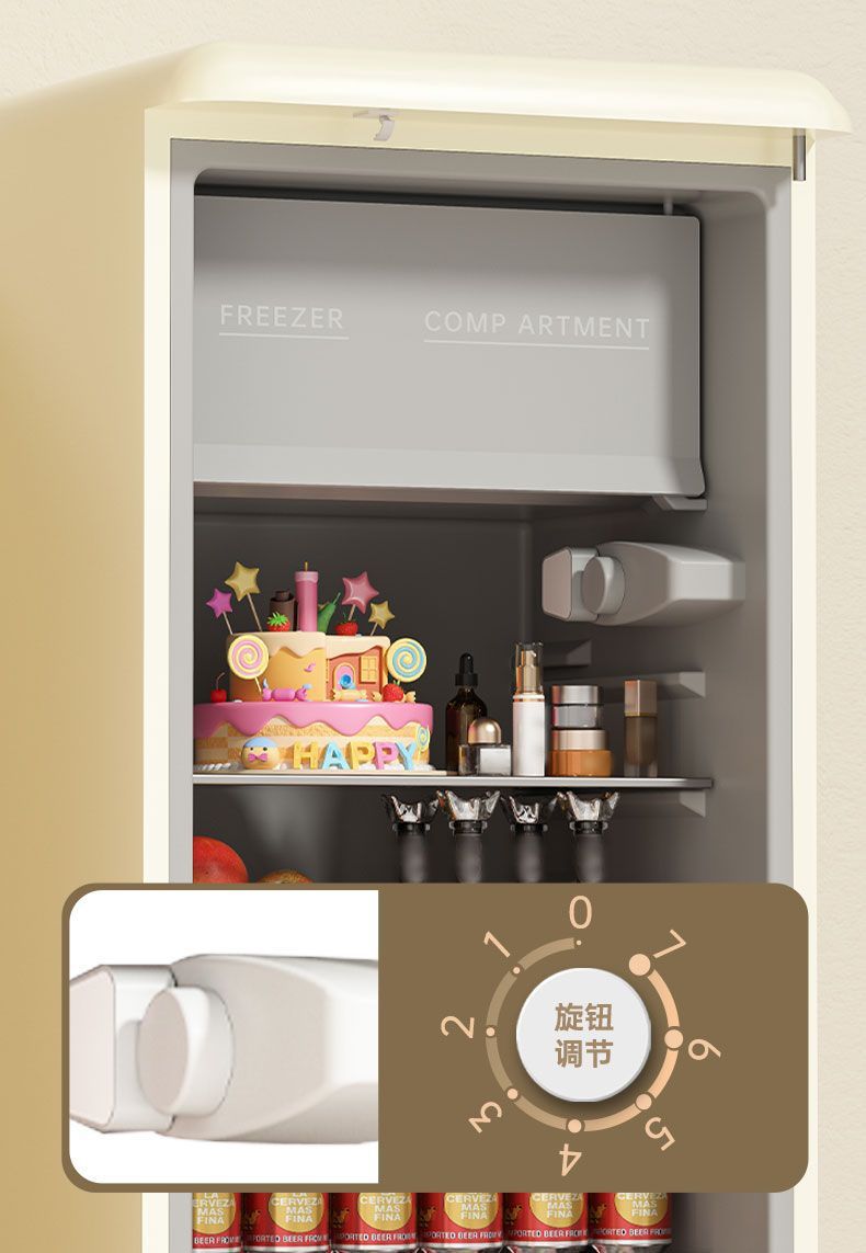 • 138리터 레트로 화이트 완전 냉장 1단계 에너지 절약 + LED 조명