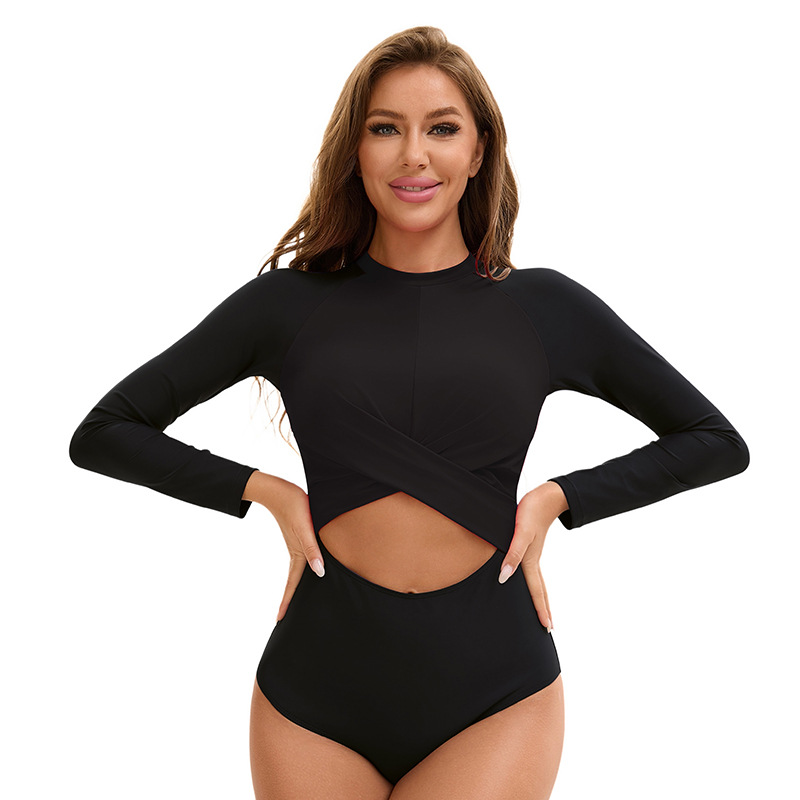 국경 간 새로운 보수적 인 긴팔 원피스 수영복 여성 대외 무역 유럽과 미국의 컬러 매칭 선 스크린 서핑 세트 삼각형 타이트 수영복