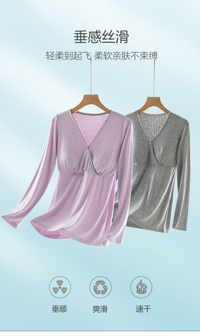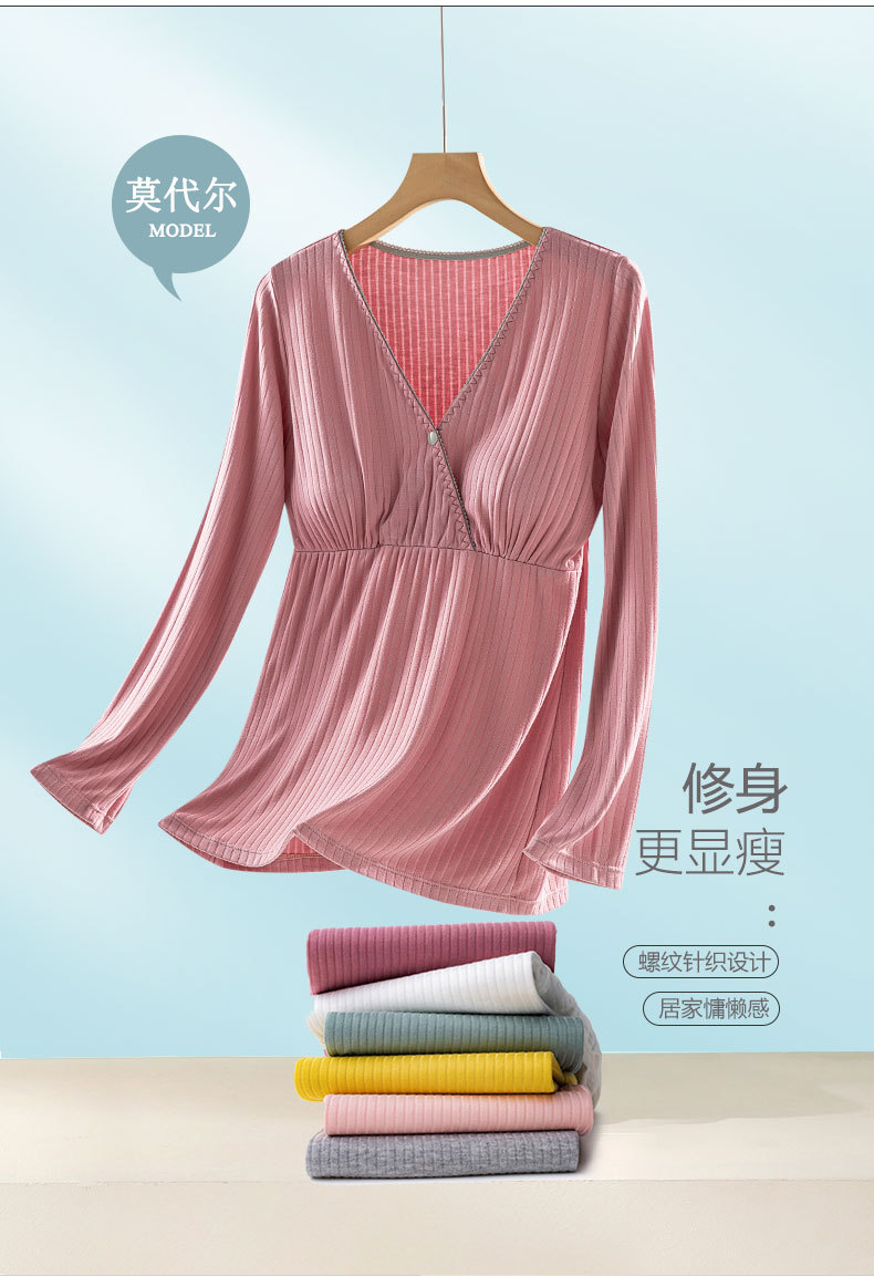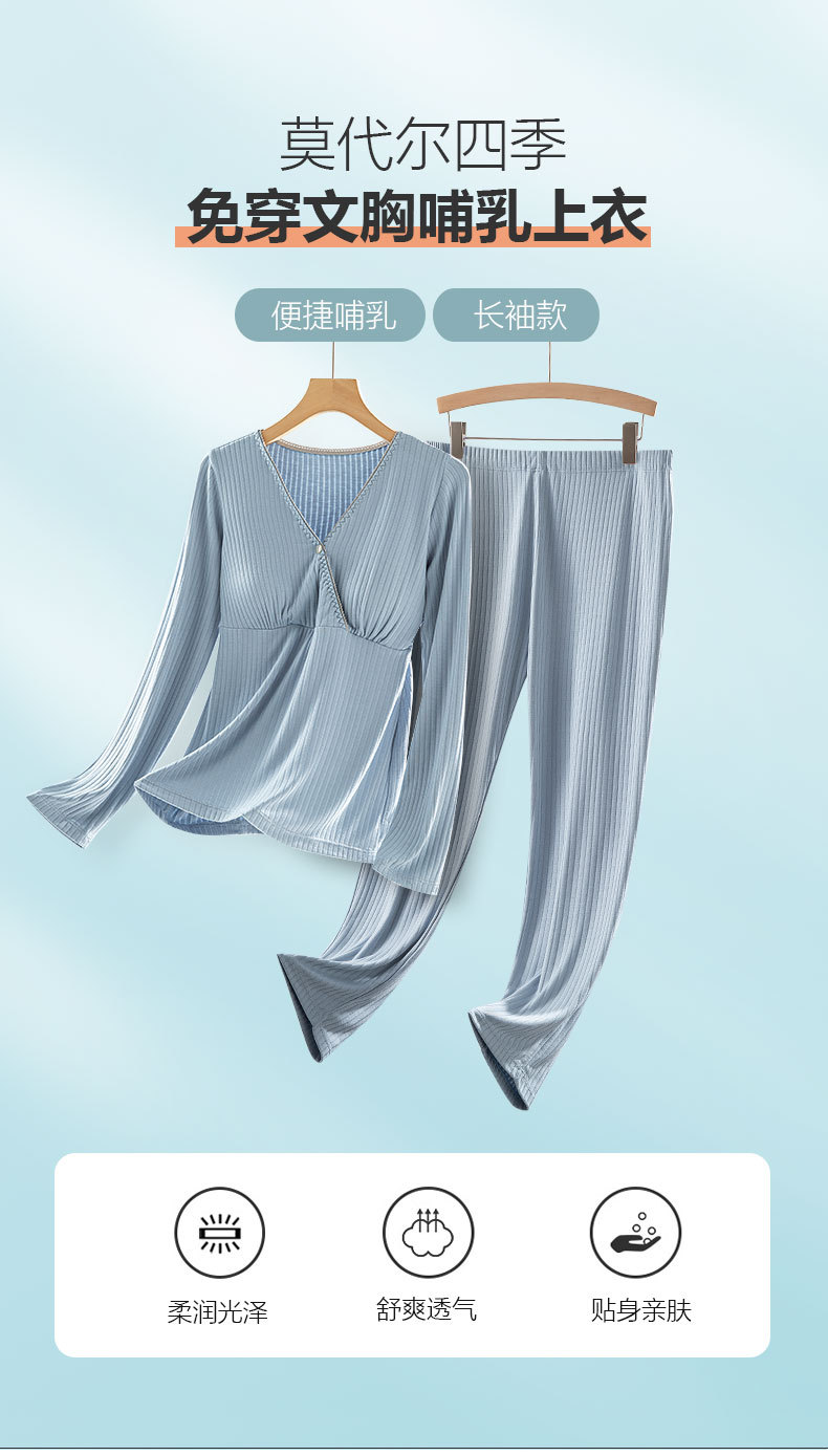 임산부 가을 의류 긴 바지 간호 잠옷은 속옷 가을 및 겨울 모달 감금 의류 간호 의류 홈 긴 소매 밖에서 입을 수 있습니다.스토어 가기