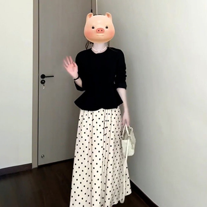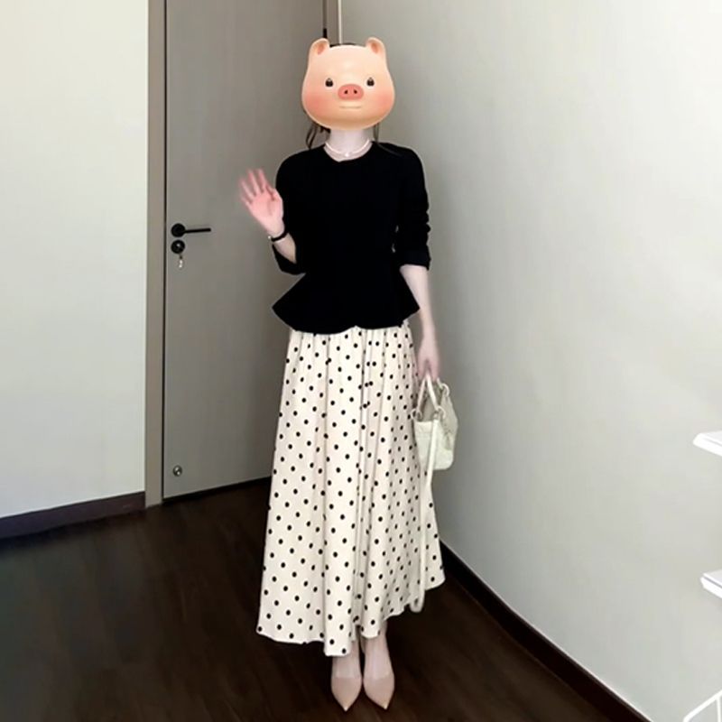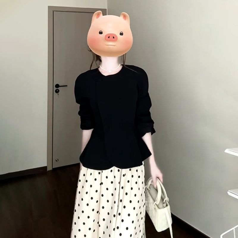 프렌치 스타일의 물방울무늬 원피스, 2026년 초봄 신상, 작은 키 여성을 위한 한국 스타일 의상 세트