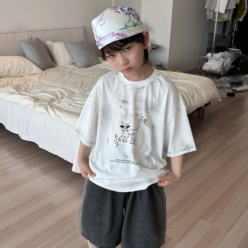 이홍 의류 소년 얇은 반팔 톱 2025 여름 새 아동복 어린이 한국식 늙은 염료 티셔츠스토어 가기