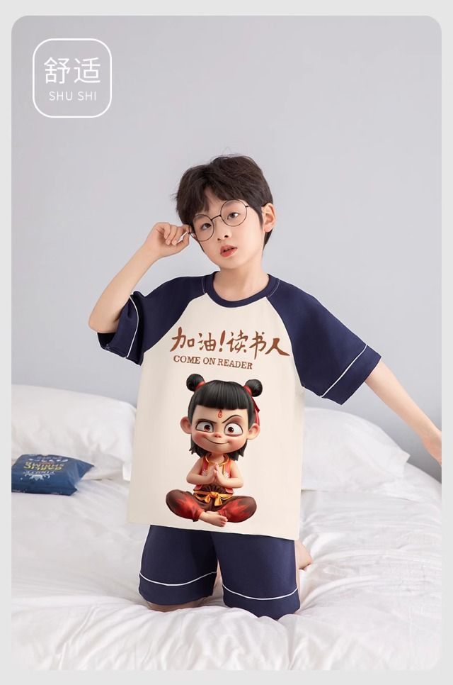 어린이 잠옷 여름 소년 잠옷 만화 반팔 반바지 어린이 중 큰 소년 홈 의류 세트스토어 가기