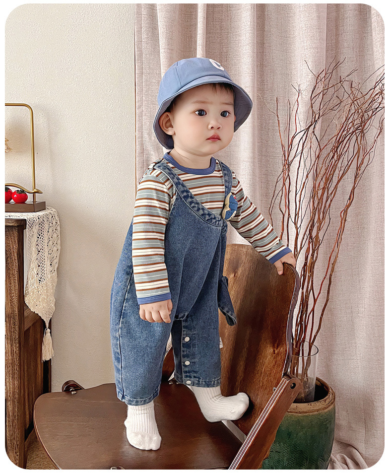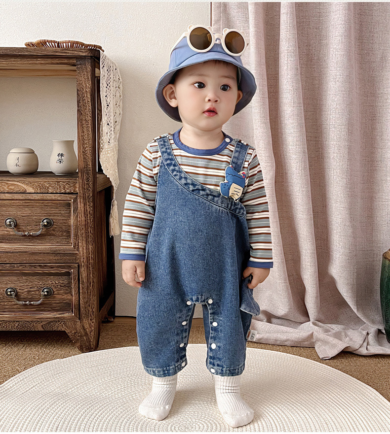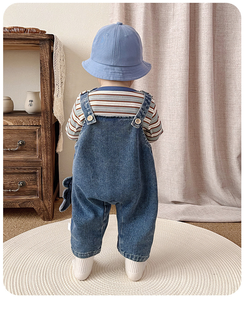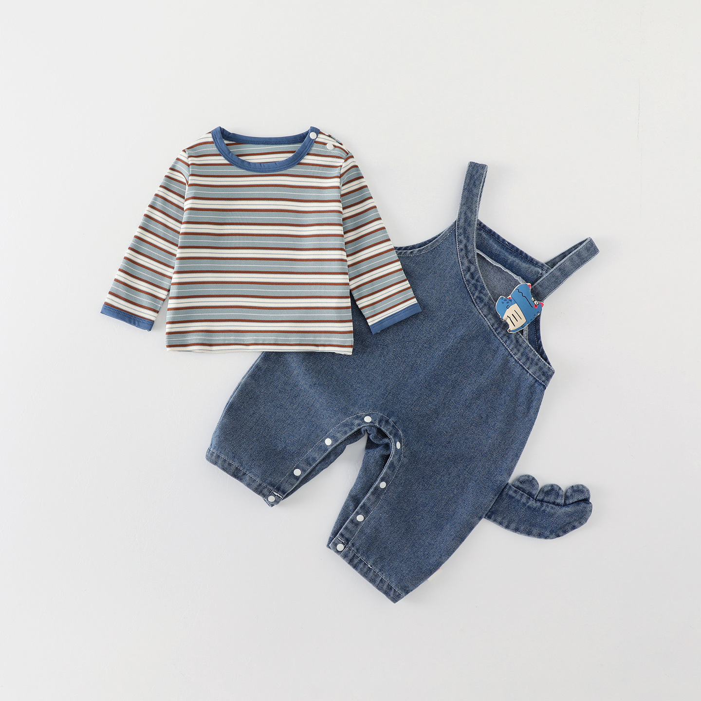 아기 소년 소녀를위한 아기 옷 여름 옷 만화 공룡 데님 세트 투피스 스트랩 여름 외출 놀이스토어 가기