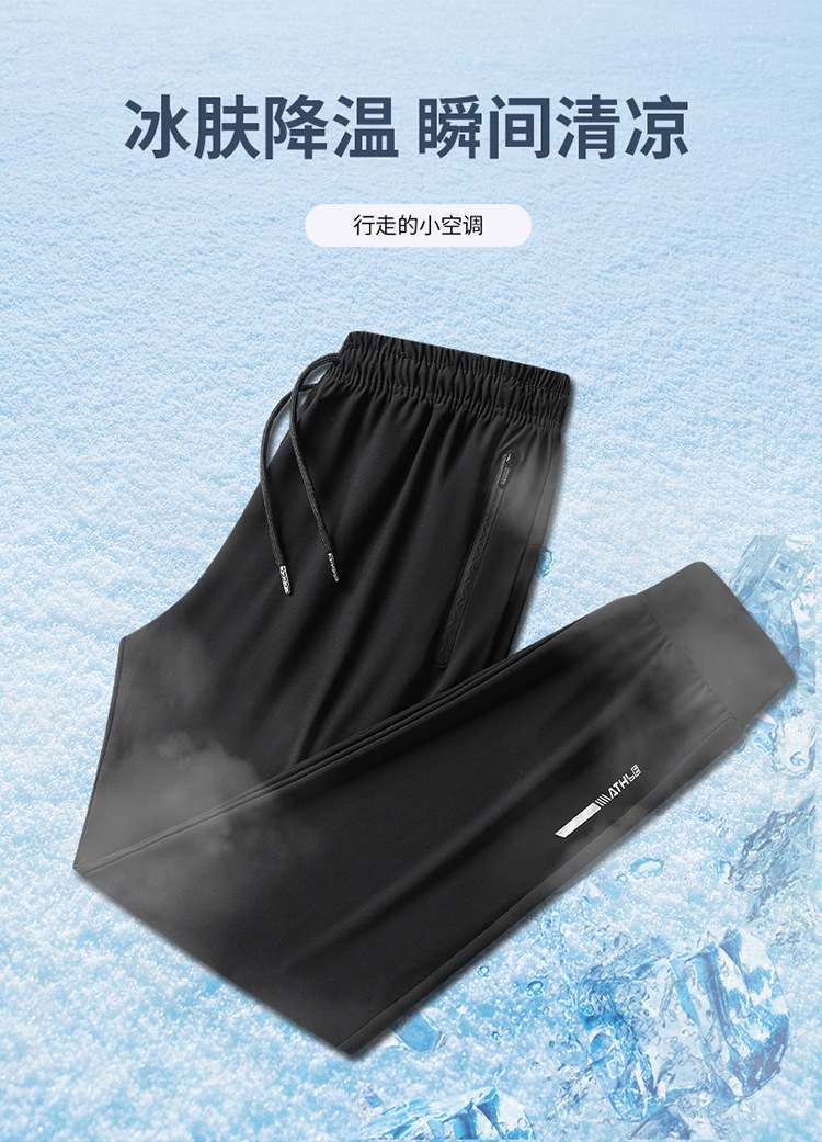 국경 간 남자 바지 스트레치 스포츠 바지 여름 얇은 플러스 사이즈 아이스 실크 바지 스트레이트 배럴 남성용 빠른 건조 캐주얼 통기성 바지