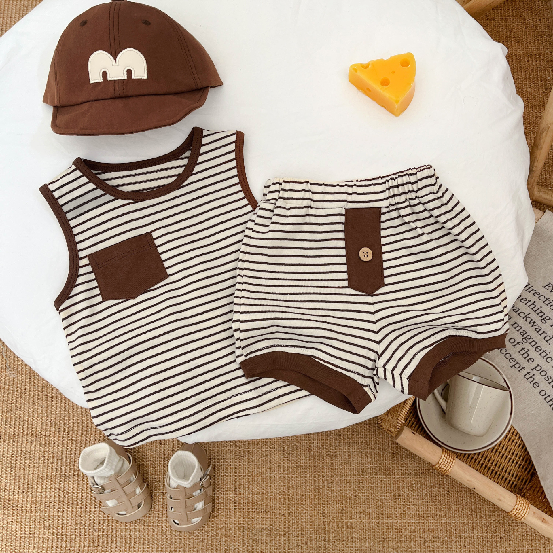 아기의 여름 조끼 세트 슈퍼 귀여운 남자의 보물 여름 원피스 분할 된 투피스 한국식 유아 더피 잘 생긴 유행 여름 원피스