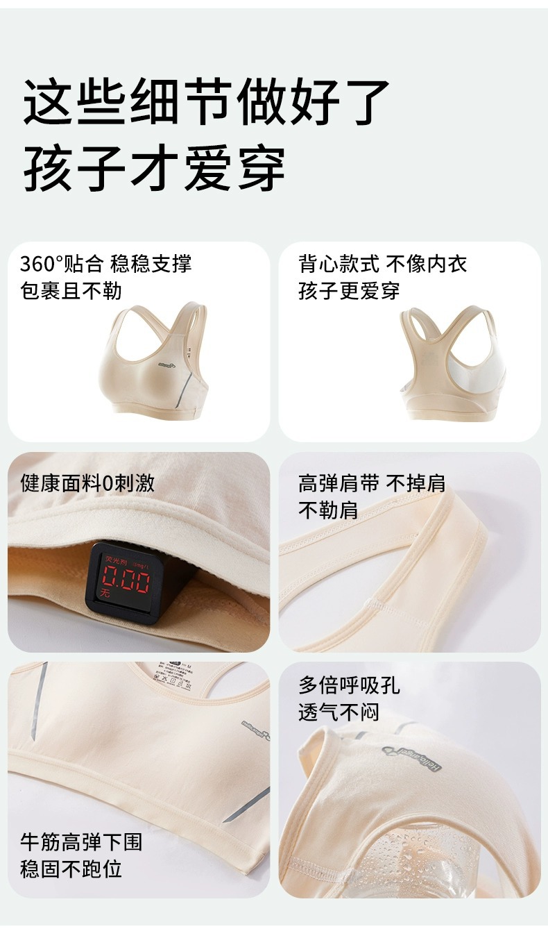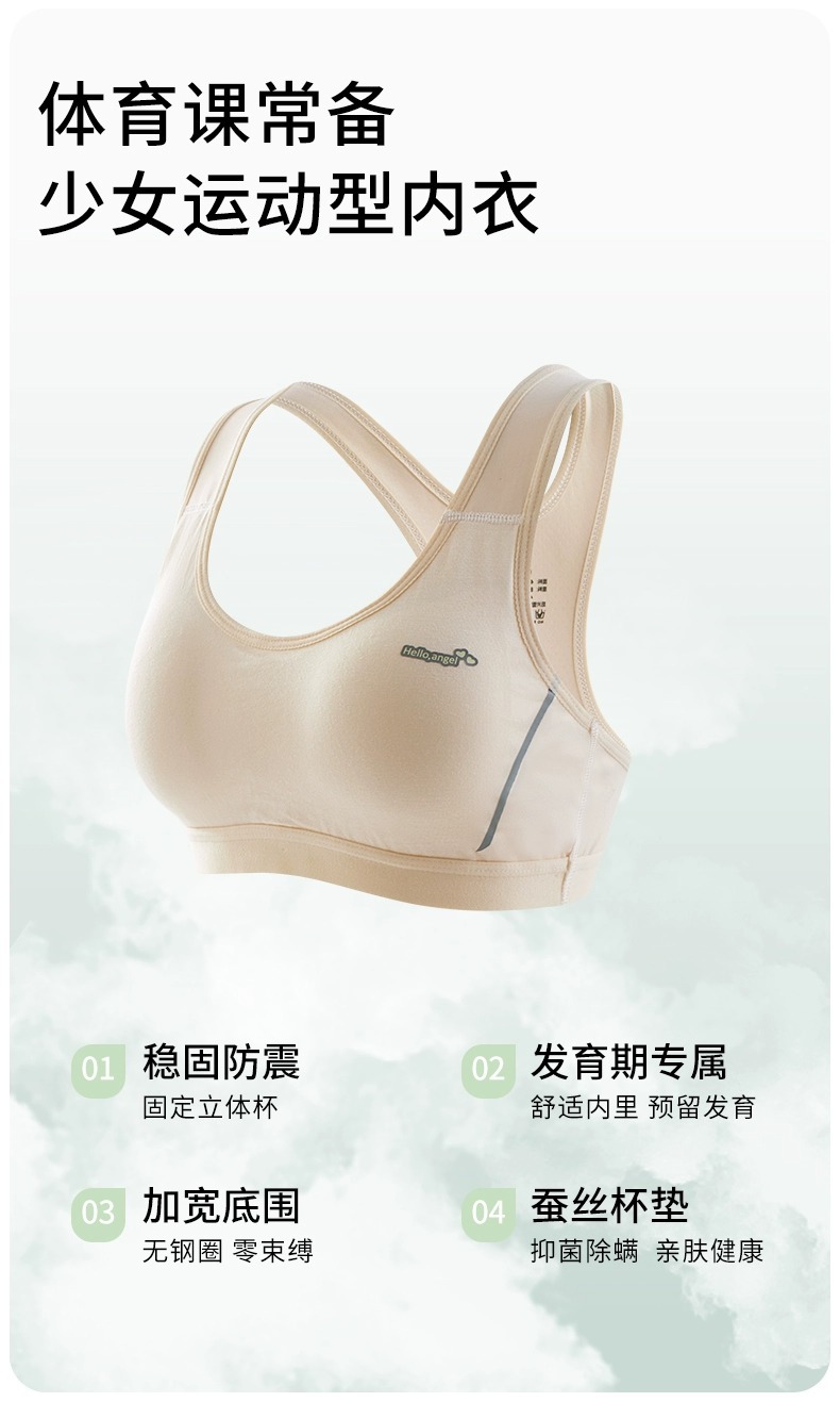여아 속옷 2단계 및 3단계 중학생 실크 스포츠 충격 방지 조끼 사춘기 소녀 발달 브래지어스토어 가기