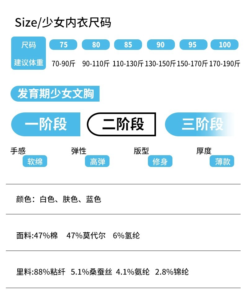 여아 속옷 2단계 및 3단계 중학생 실크 스포츠 충격 방지 조끼 사춘기 소녀 발달 브래지어