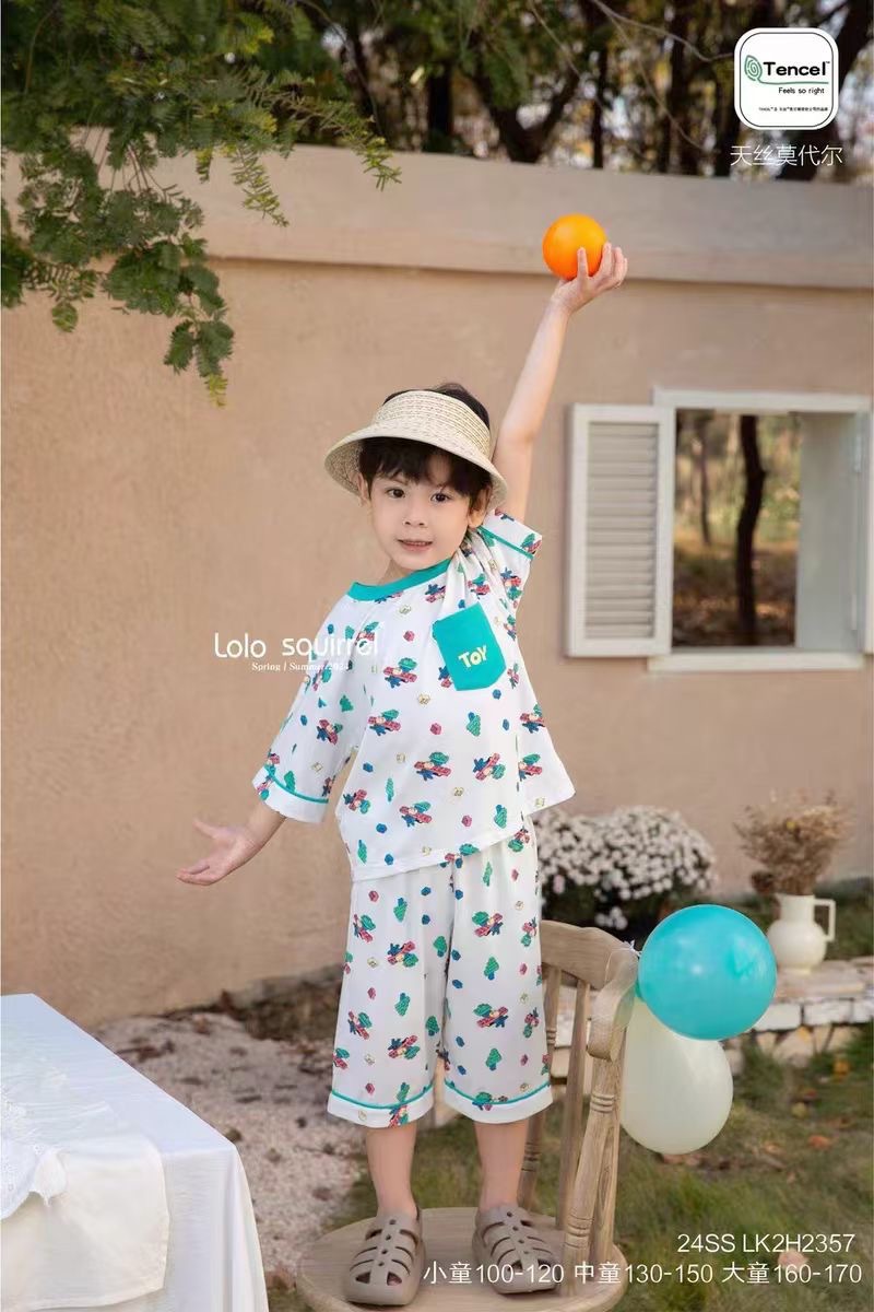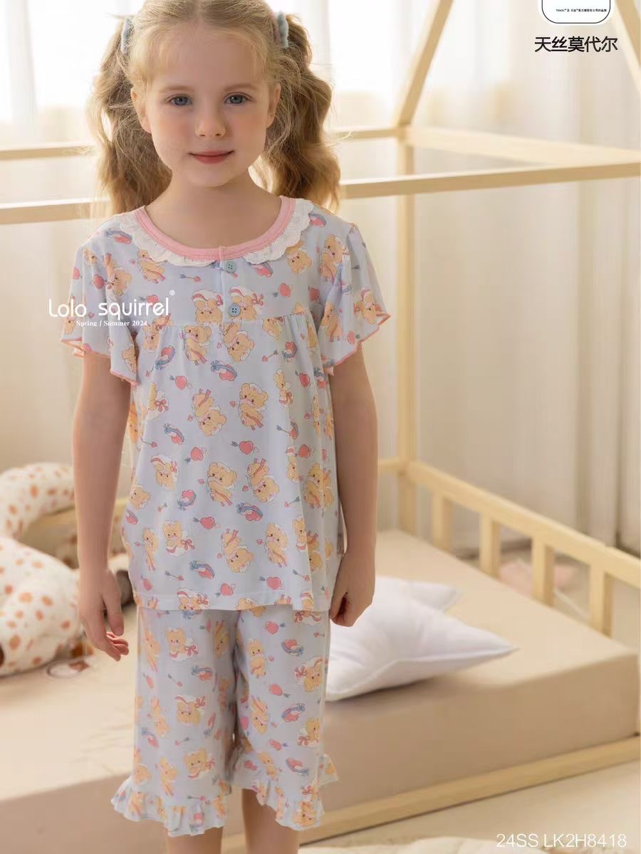 작은 다람쥐 Lolo 여름 새로운 어린이 가정 의류 소년과 소녀 속옷 세트 얇은 잠옷 잠옷 도매스토어 가기