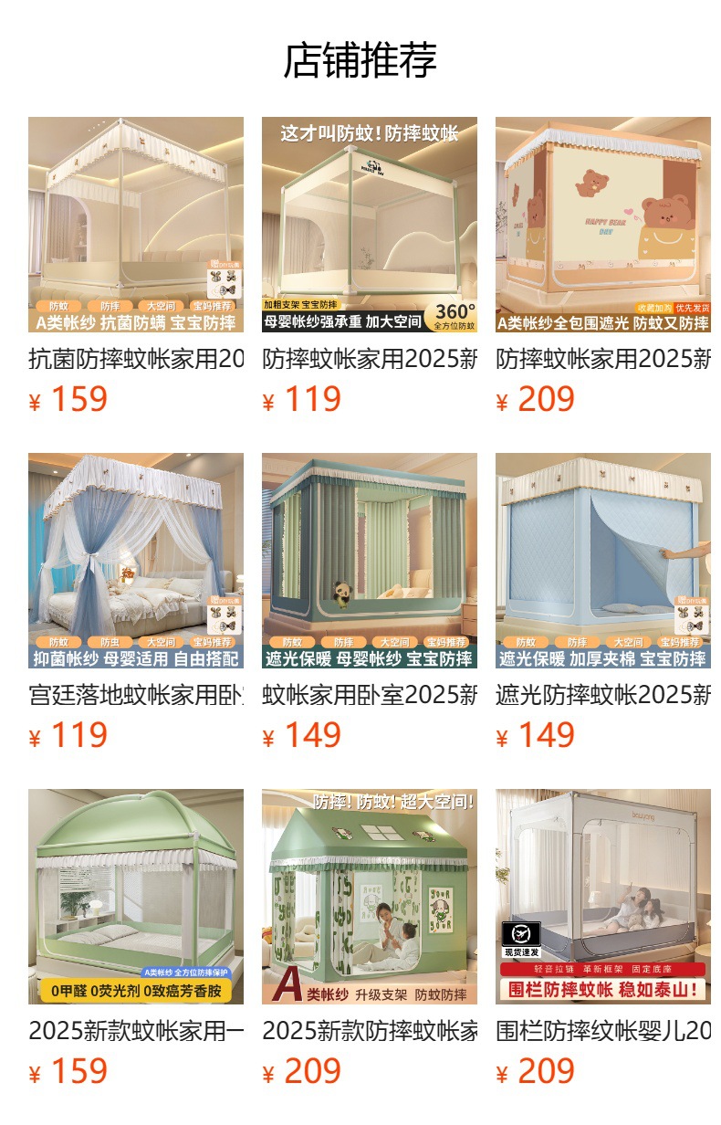2025 새로운 가을 모기장 가정용 침실 설치없는 브래킷 원피스 침대 커튼 아기의 떨어지는 침대 테이프스토어 가기