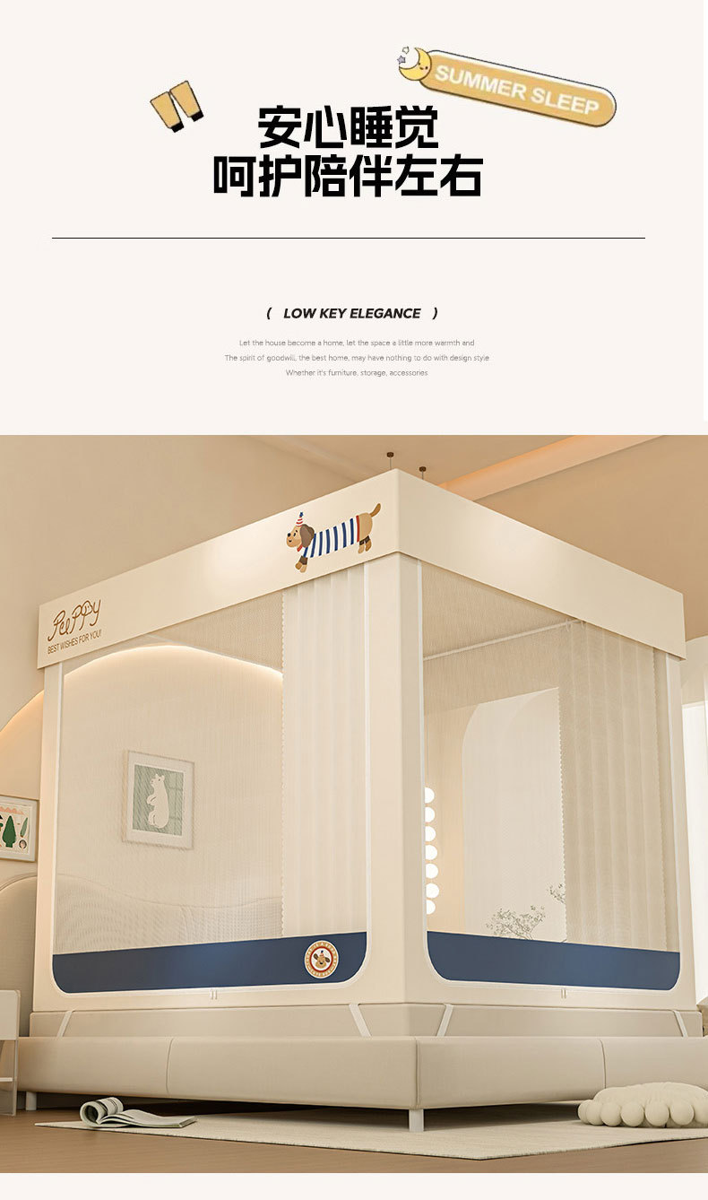 • 가든파티 [3면 침대커튼 + 소프트라이트 천장 + 7A항균 + 바닥없는 매트리스 교체가 더 편리함] - 무료 선풍기봉