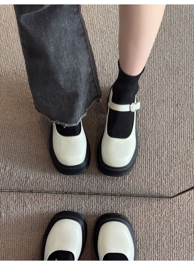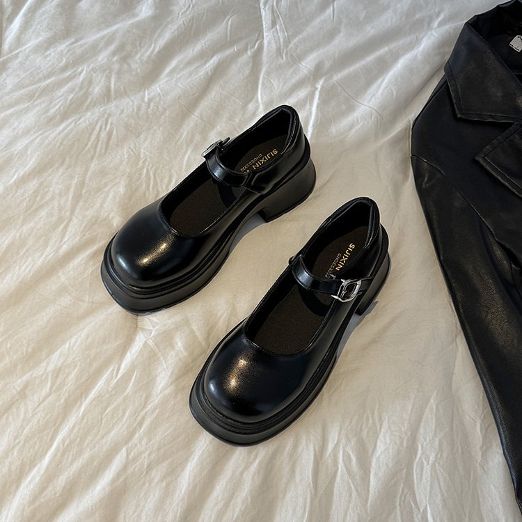 영국 스타일 플랫폼 가죽 신발 여성의 2025 새로운 봄과 여름 새로운 도착 얕은 입 올 매치 블랙 Jk 메리 제인 신발스토어 가기