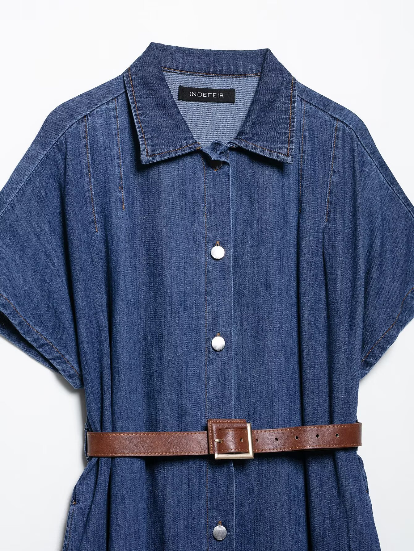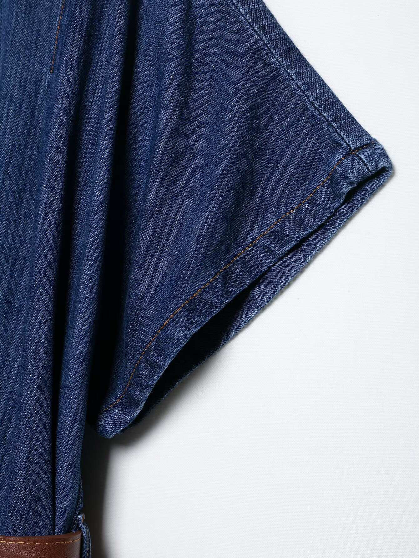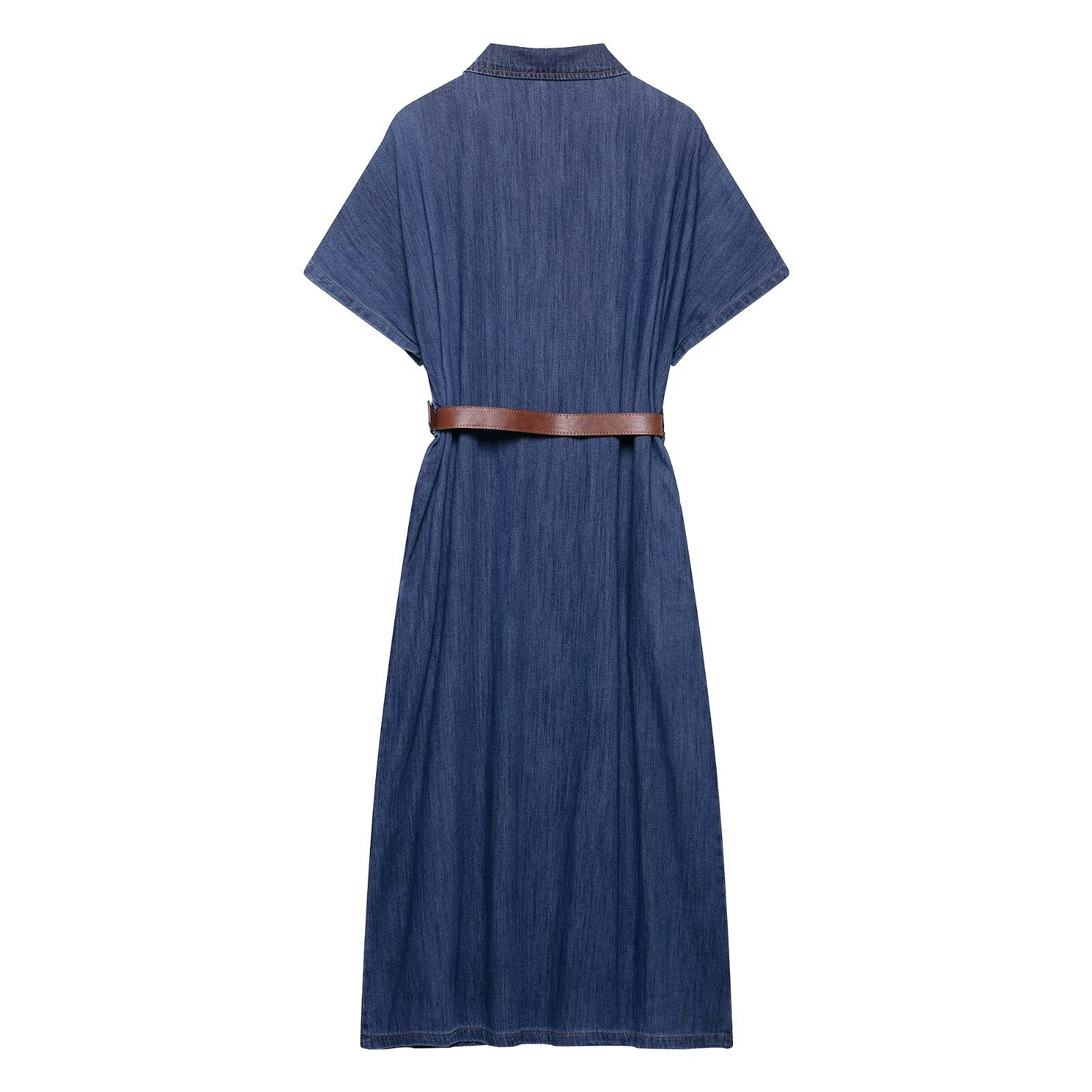 2025 봄 새로운 유럽과 미국의 국경 여성 패션 벨트 미디 데님 원피스 W085 280407