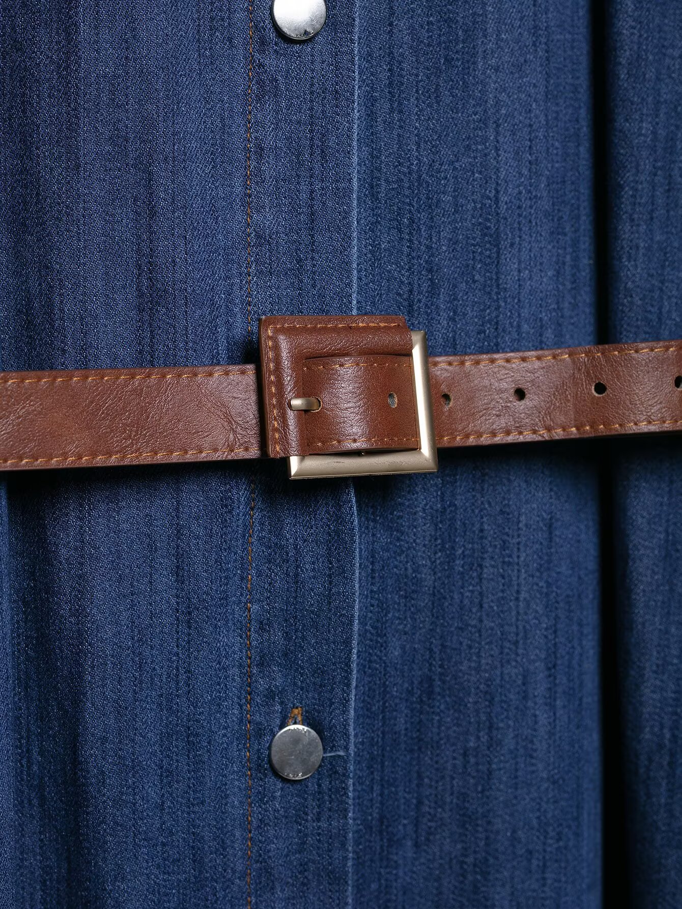 2025 봄 새로운 유럽과 미국의 국경 여성 패션 벨트 미디 데님 원피스 W085 280407스토어 가기