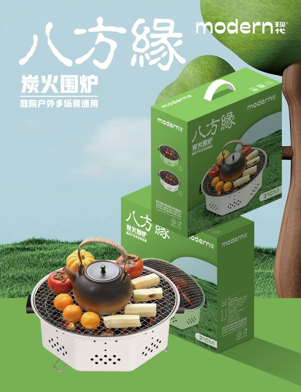 새로운 스타일의 차를 끓이는 둥근 스토브, 야외 바베큐 숯불 스토브, 가정용 무연 한국식 바베큐 스토브