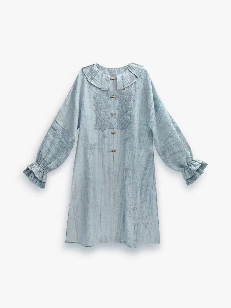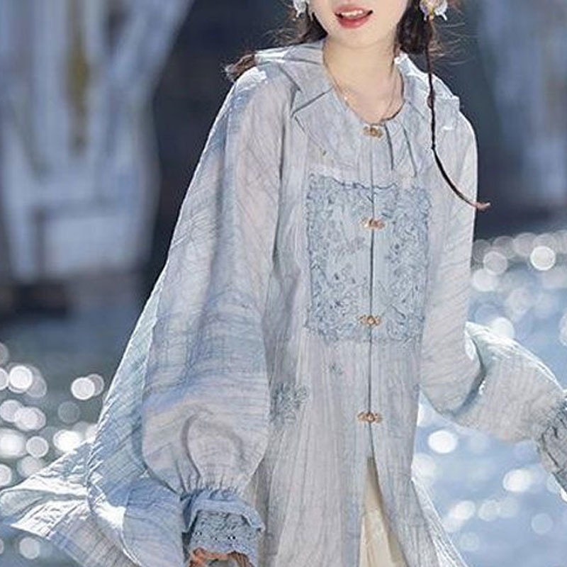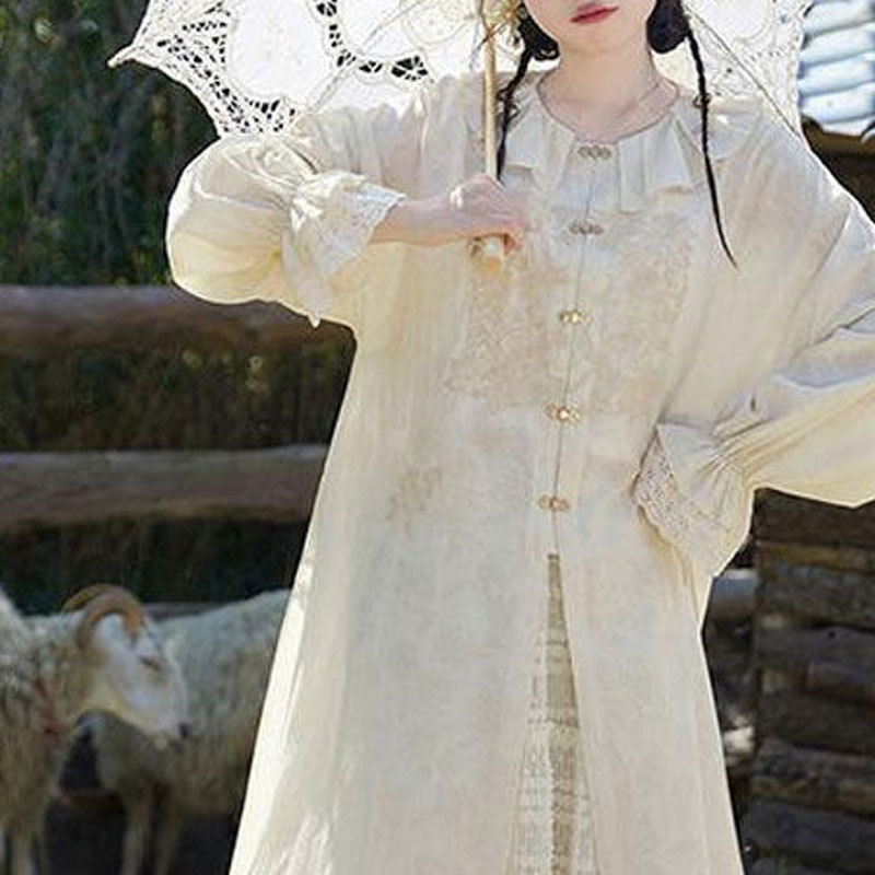 새로운 중국 스타일 국가 스타일 라운드 넥 가슴 긴 셔츠 퍼프 스커트 개선 한푸 세트 여성의 2025 년 여름 새로운스토어 가기