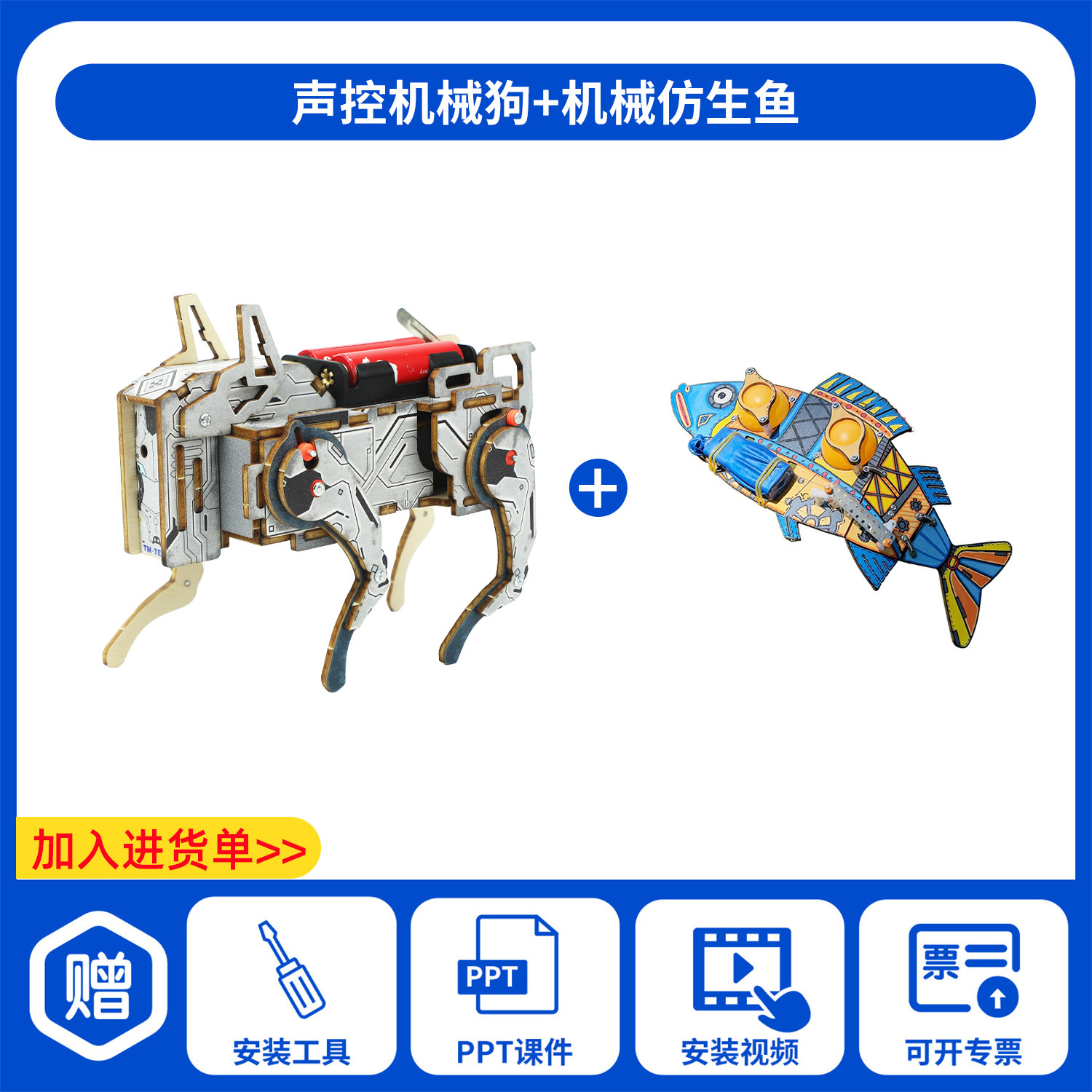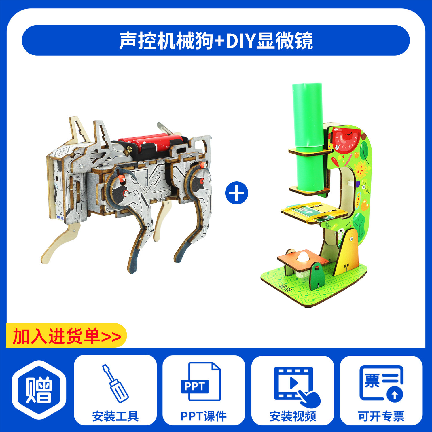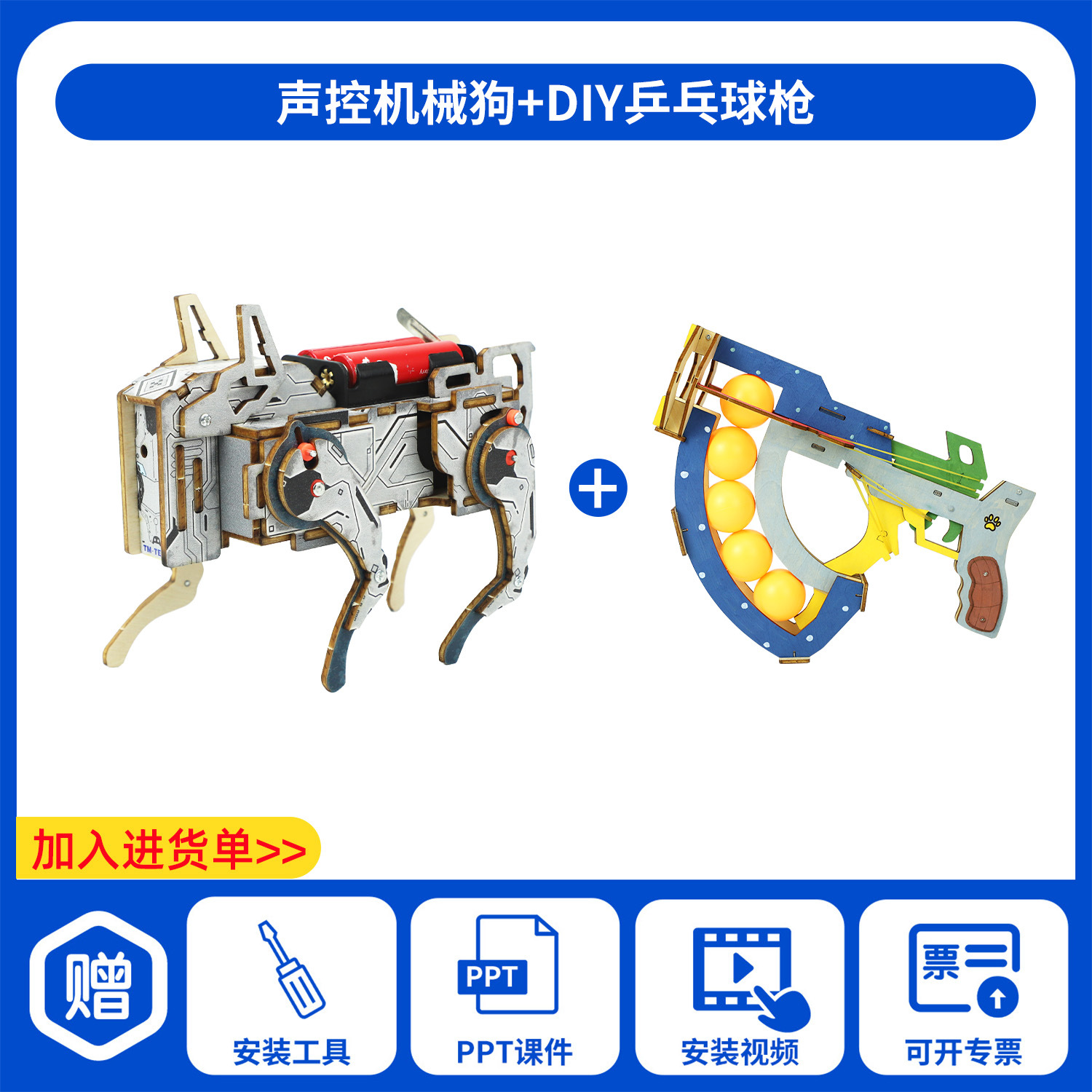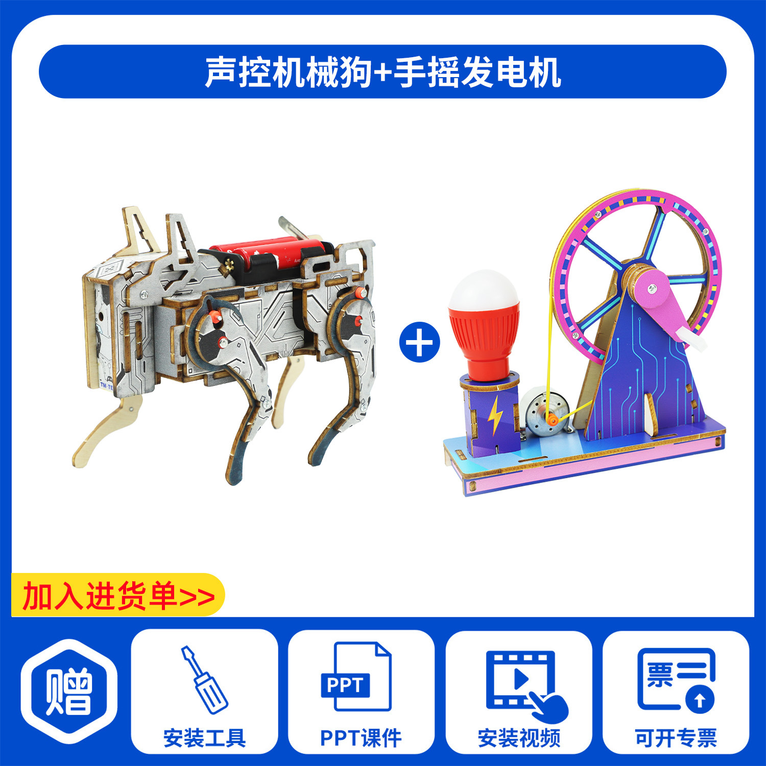 어린이 교육용 장난감 교구 초등학생 DIY 음성 제어 기계 개 과학 교육 수공예 실험 재료 패키지 제작
