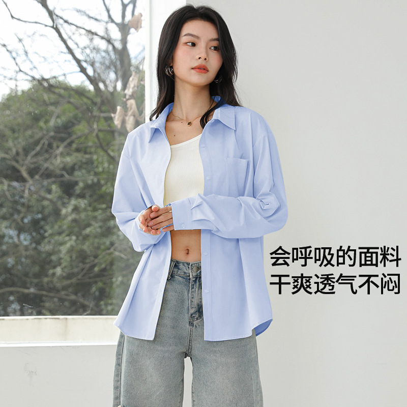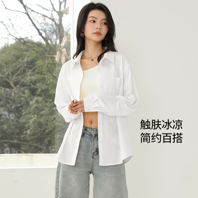 여성용 자외선 차단 셔츠, 여성용 긴팔 고급 셔츠, 여성용 여름 가볍고 통기성이 뛰어난 흰색 셔츠 재킷 탑