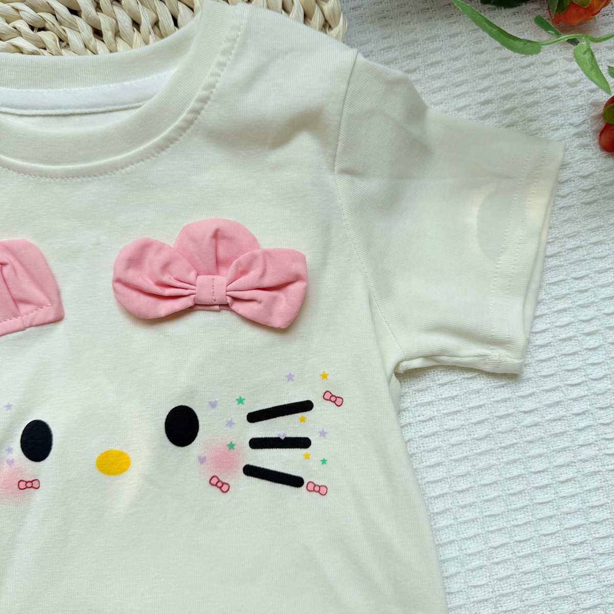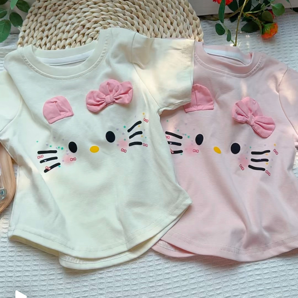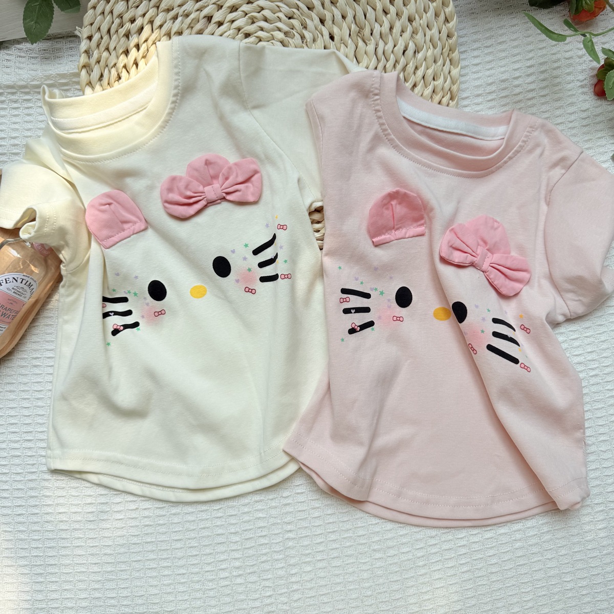 여자 KT 고양이 스타일 올 매치 코튼 반팔 여름 2025 새로운 귀여운 만화 반소매 어린이 여름 옷스토어 가기