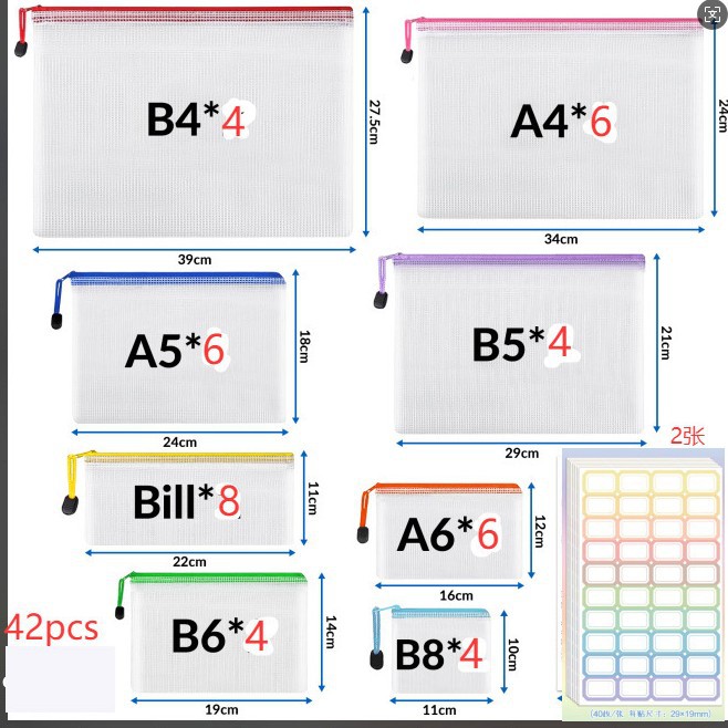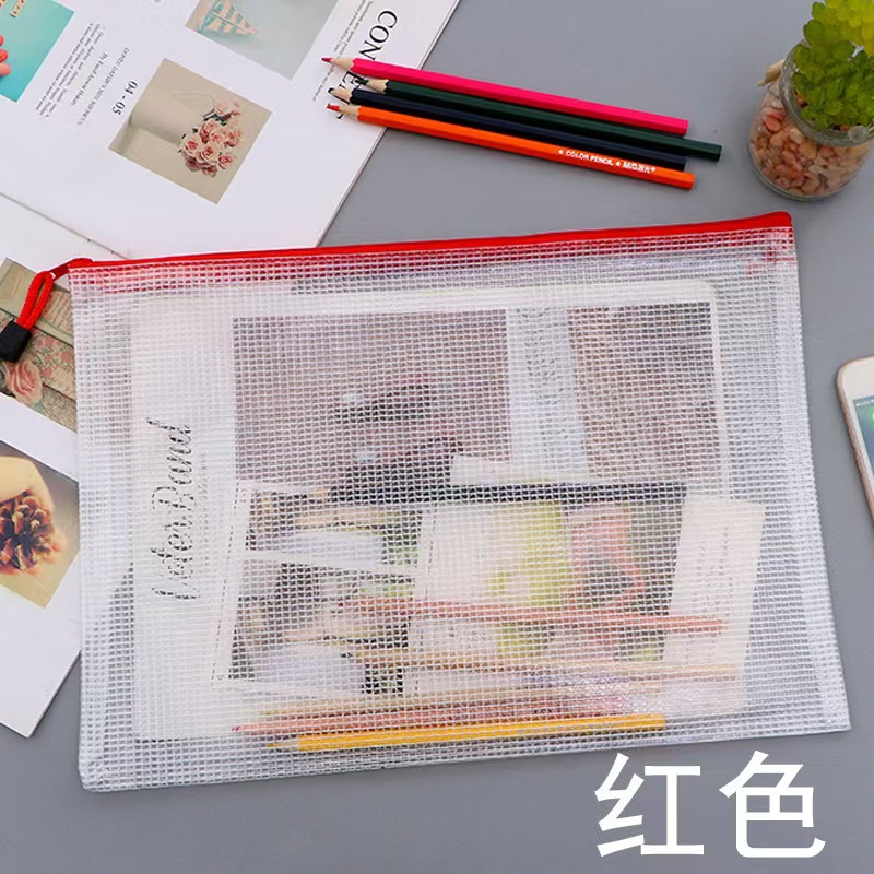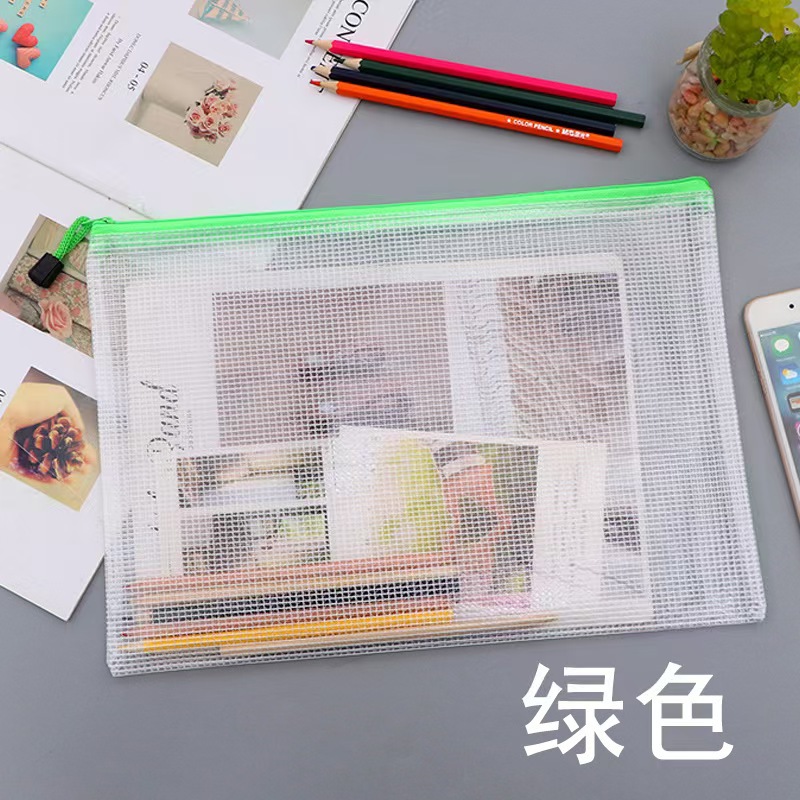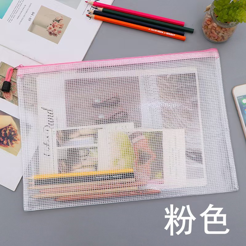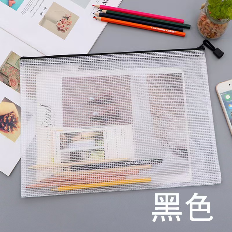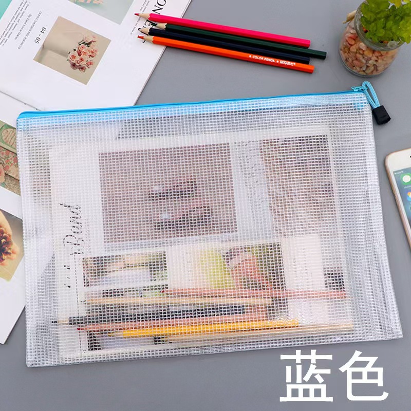 DZ 두꺼운 파일 가방 투명 PVC 가방 지퍼 가방 메쉬 파일 가방 학생 문구 가방 사무실 보관
