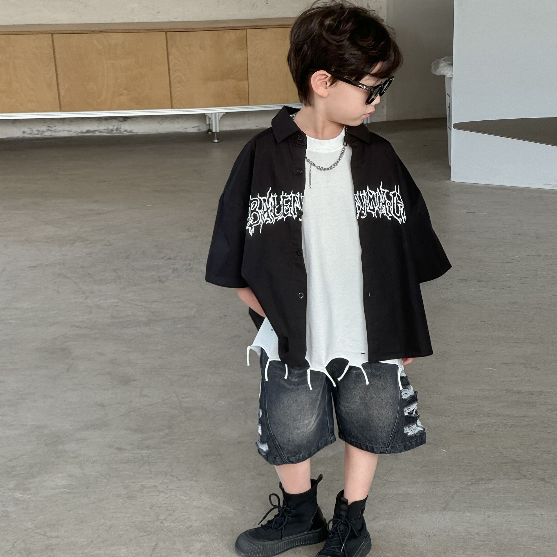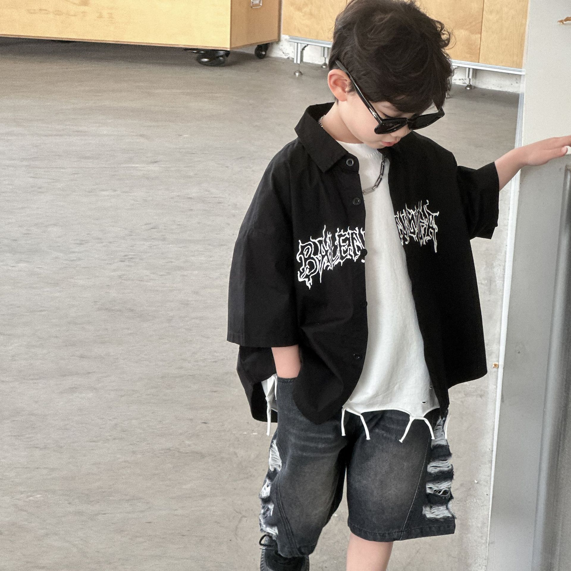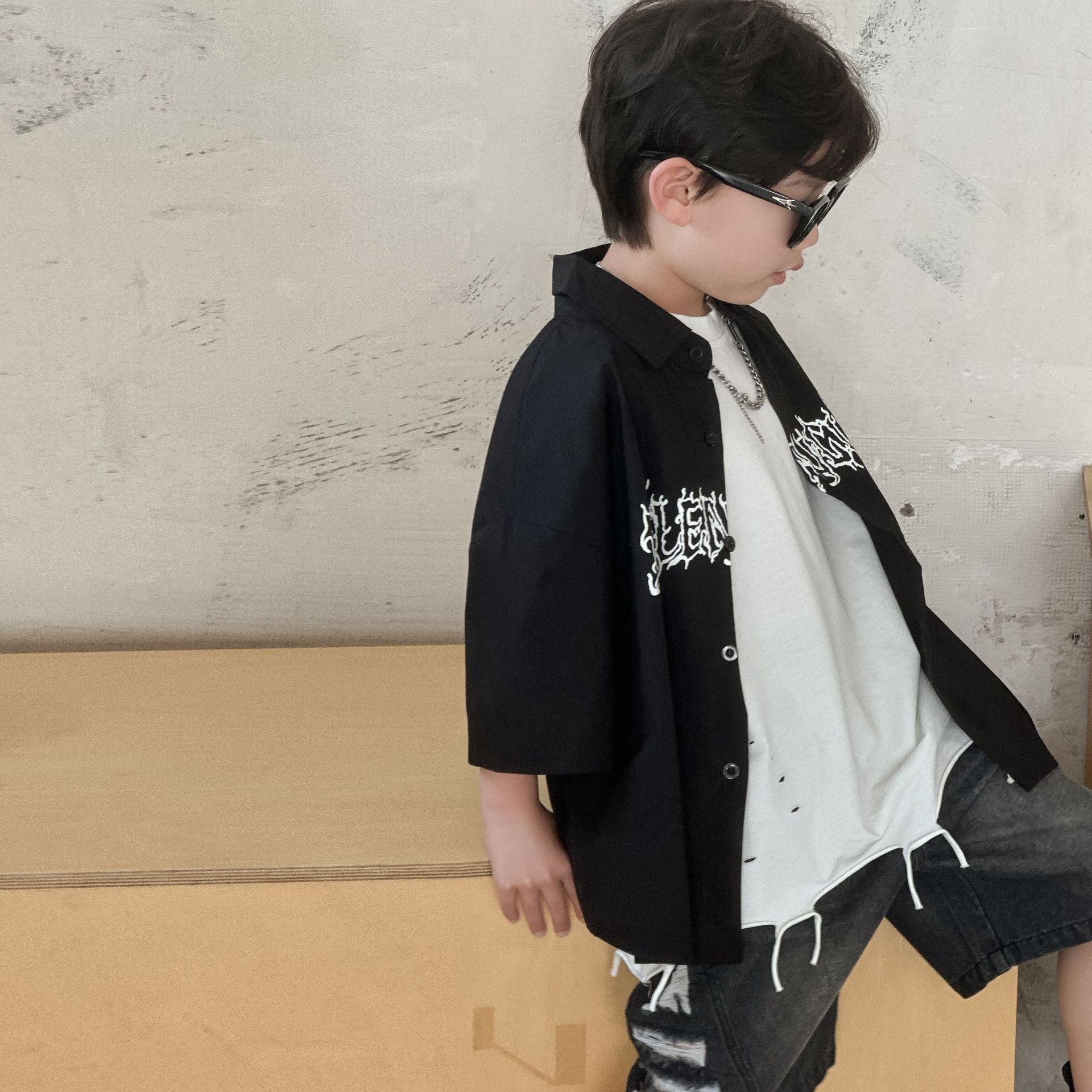 소년 여름 얇은 반팔 셔츠 2025 새로운 어린이 여름 옷 소년 아동 의류 캐주얼 아동상의 유행스토어 가기