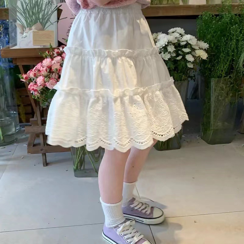 여자 치마 2025 여름 새로운 아기 화이트 케이크 치마 코튼 피부 친화적 인 편안한 캐주얼 스커트스토어 가기