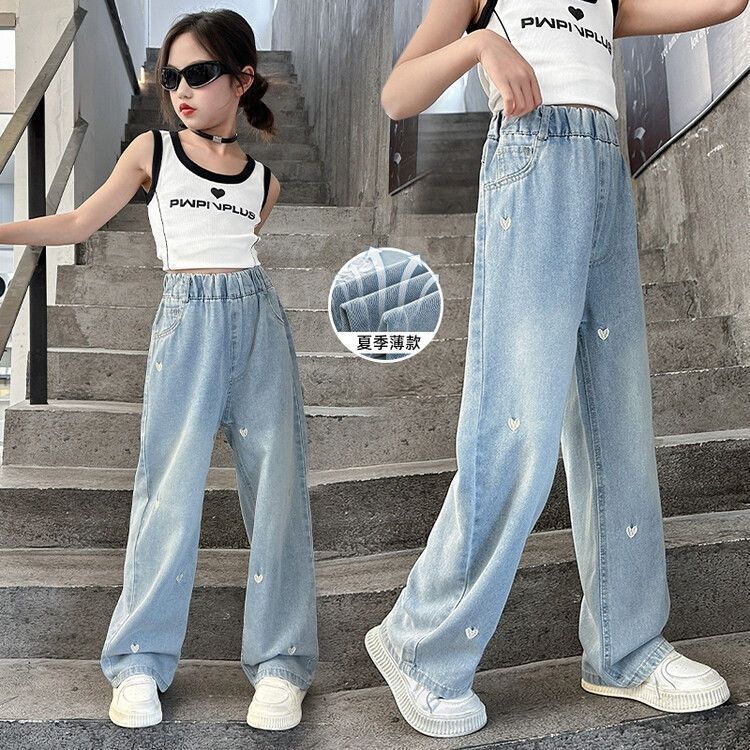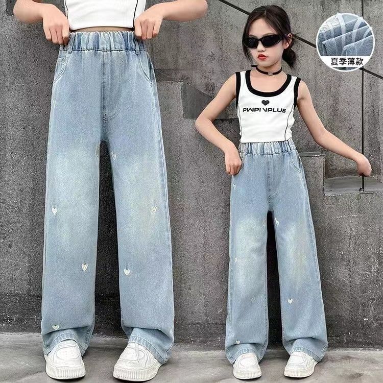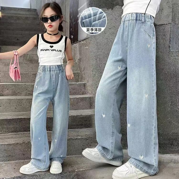 중다 여자 텐셀 청바지 여름 얇은 2025 새로운 넓은 다리 바지 서양식 슬리밍 바지스토어 가기