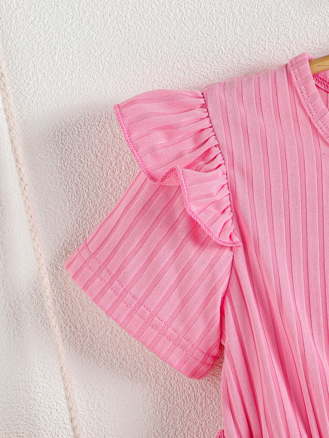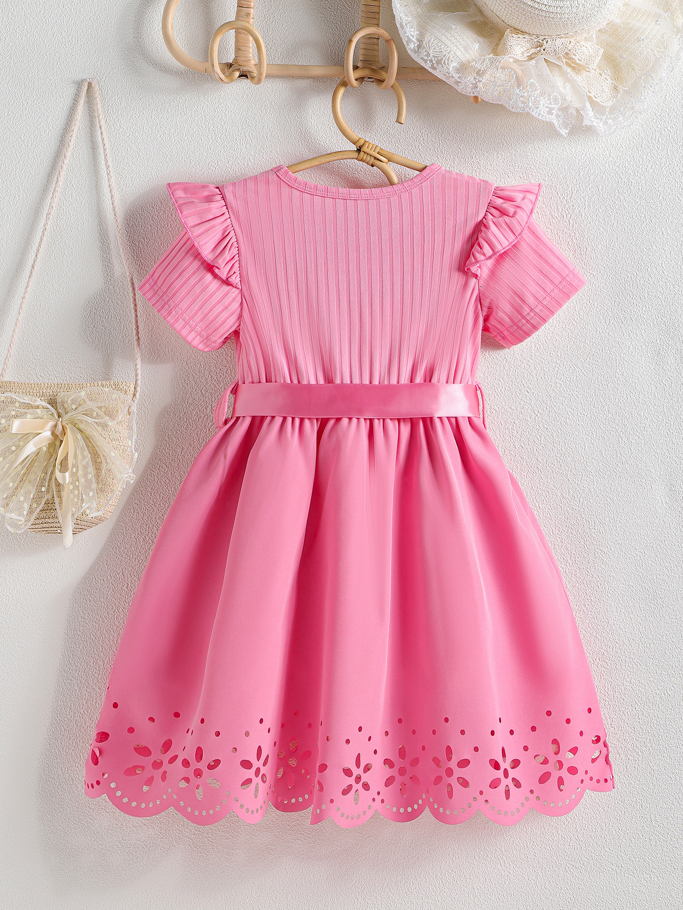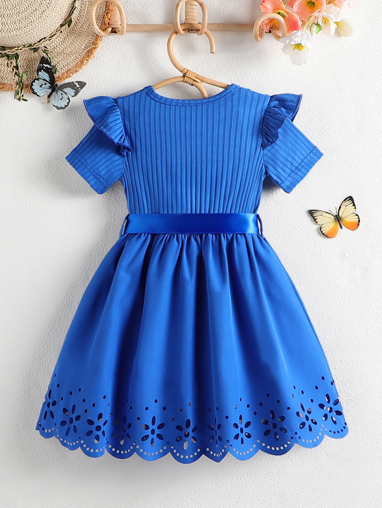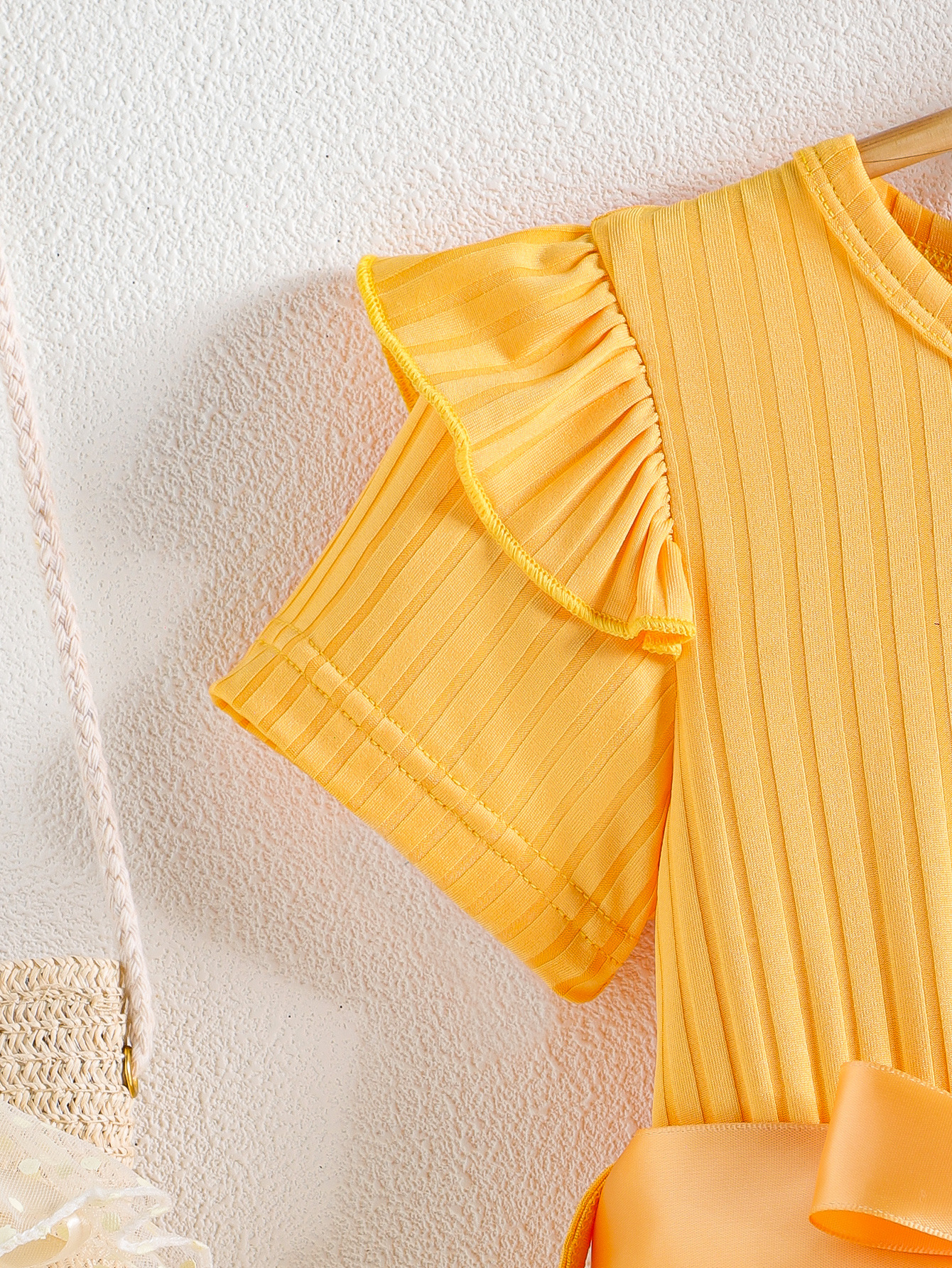 여름 새로운 소녀 황금 공주 편지 인쇄 활 벨트 둥근 목 짧은 소매 원피스