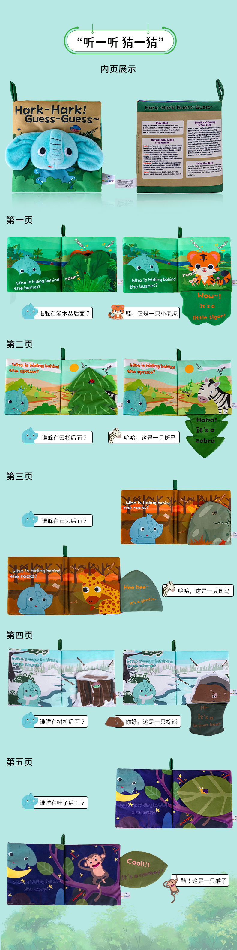 새로운 동물의 흥미로운 터치 테일 헝겊책을 맞춰보세요. 부모와 자녀의 대화형 감각 인식 헝겊책을 계몽하세요.스토어 가기