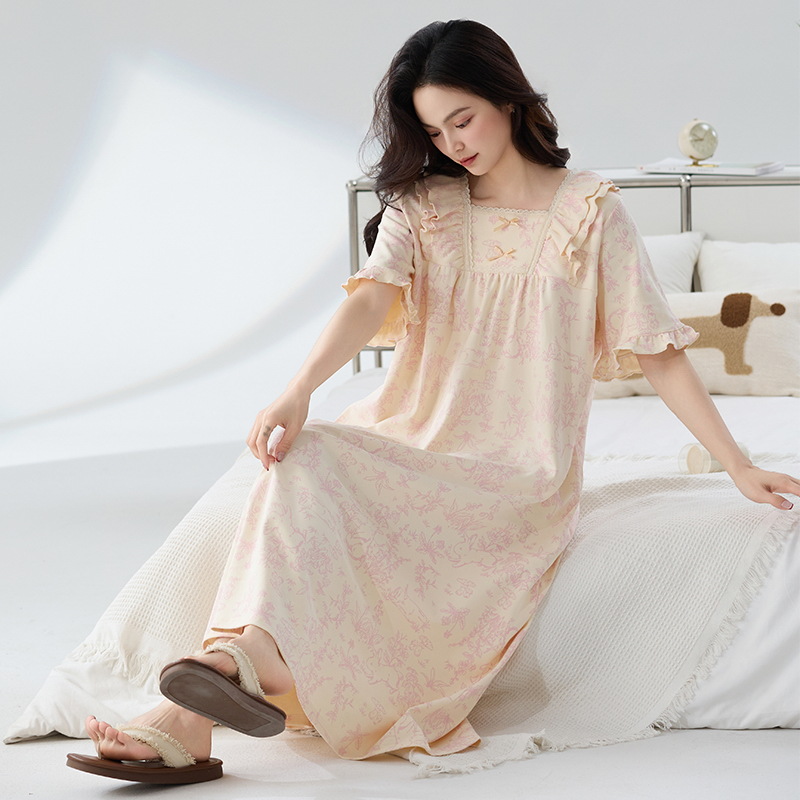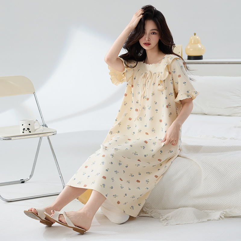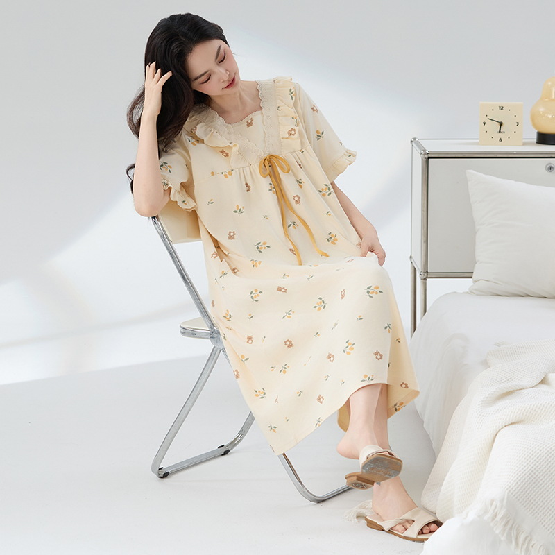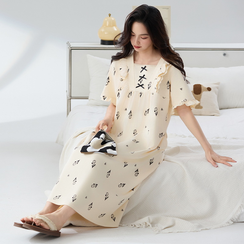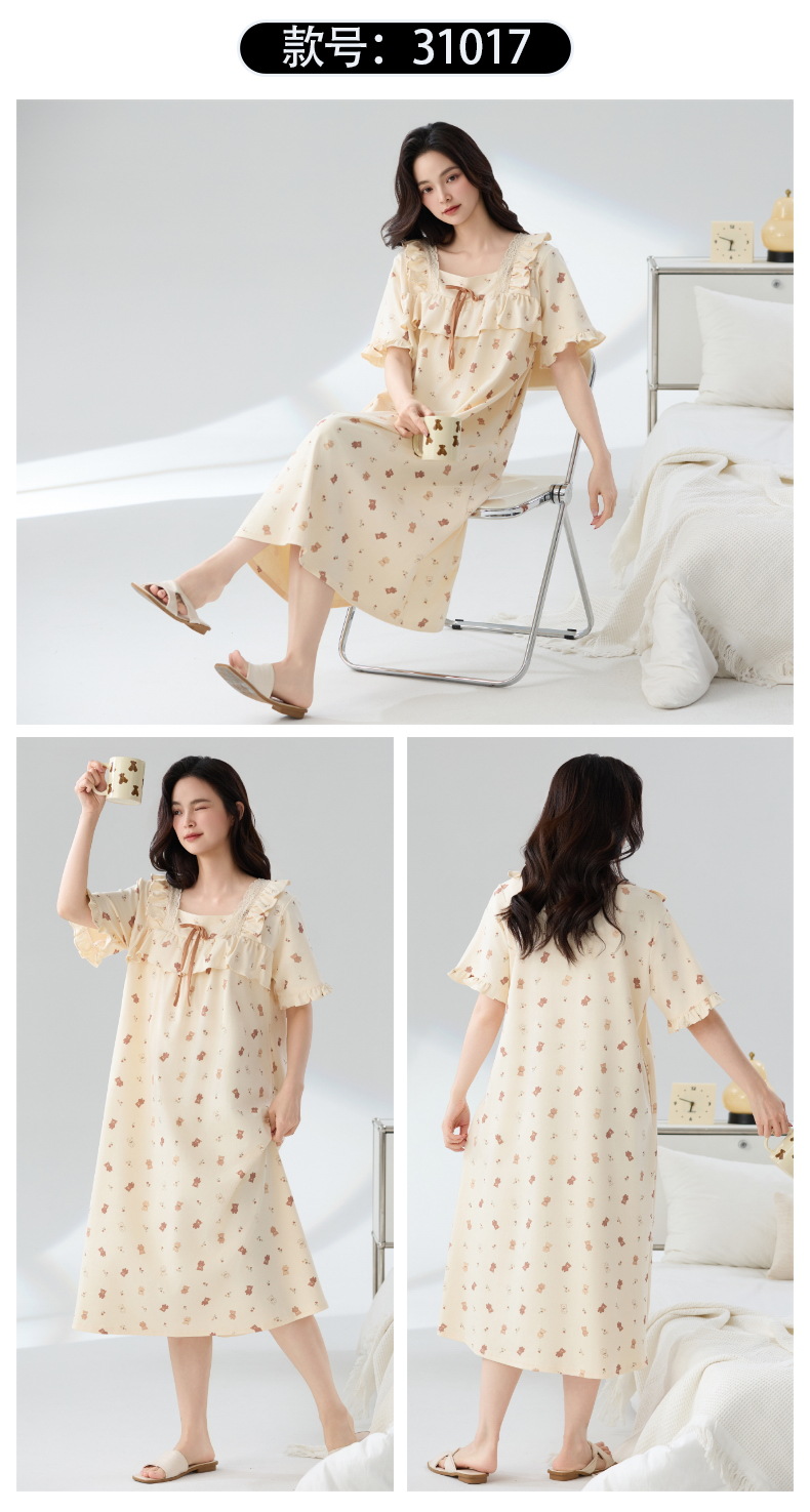 잠옷 면화 클래스 A 여름 반팔 여성 여름 여름 홈 의류 임산부 플러스 사이즈 100.00kg 통통녀 잠옷스토어 가기