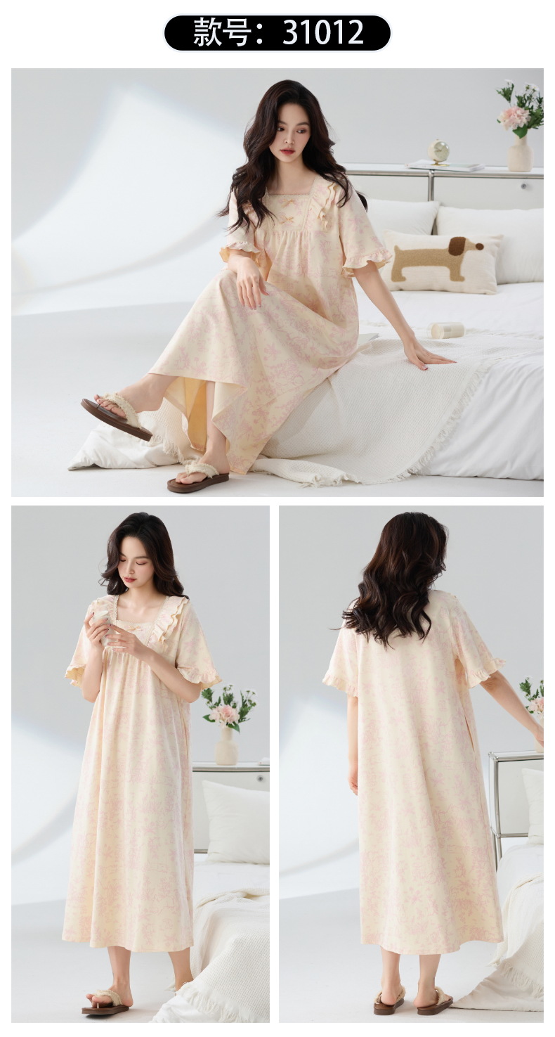 잠옷 면화 클래스 A 여름 반팔 여성 여름 여름 홈 의류 임산부 플러스 사이즈 100.00kg 통통녀 잠옷