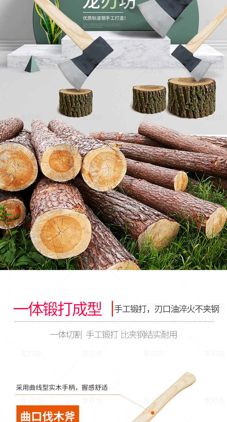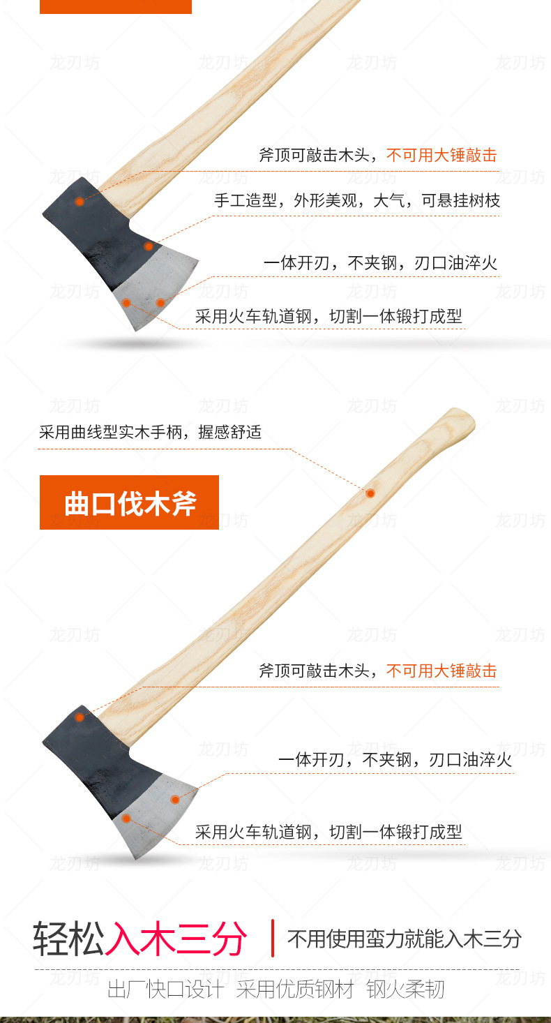 트랙 강철 도끼, 야외 가정용 벌목 및 장작 절단 겸용 도끼, 손으로 단조한 일체형 소방 도끼