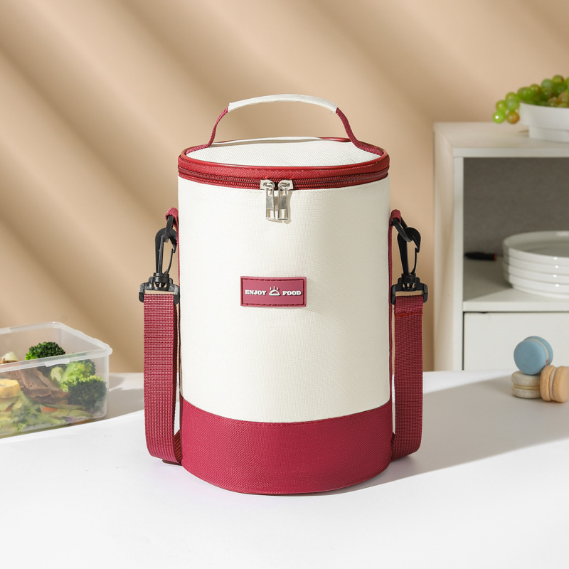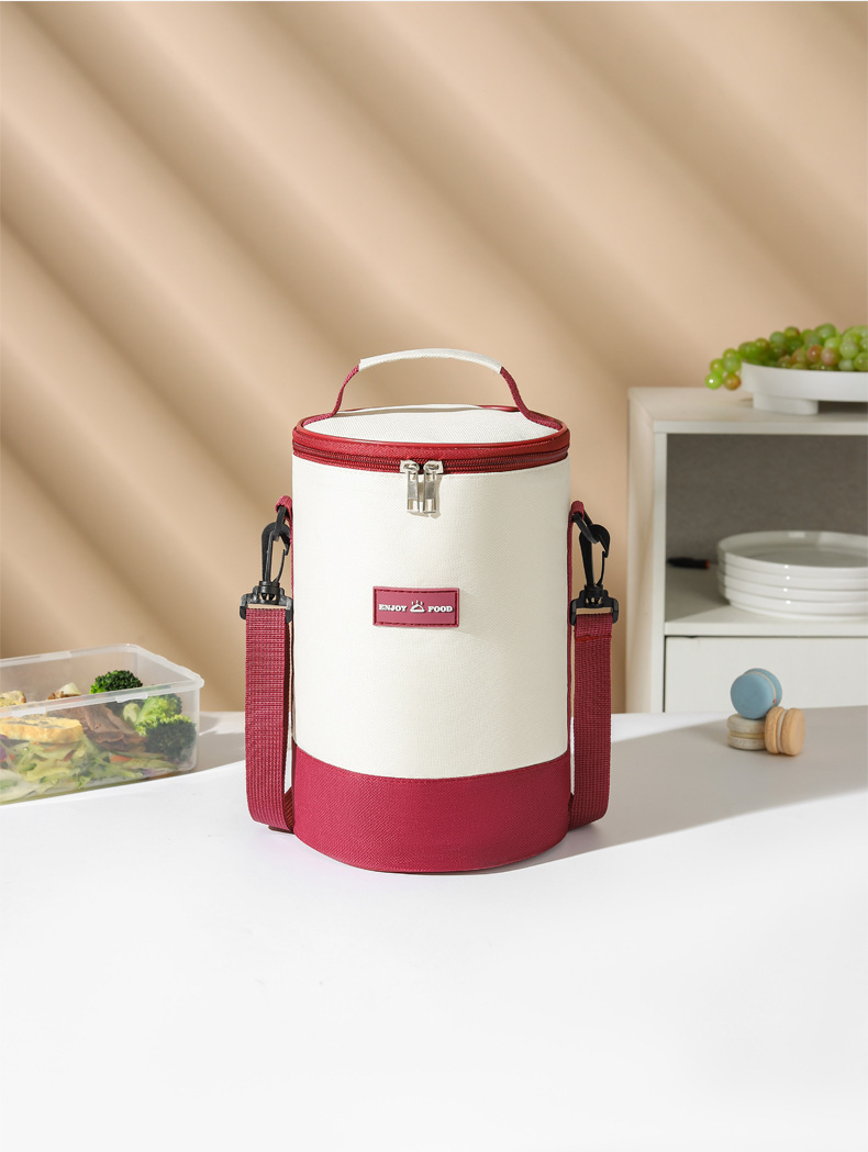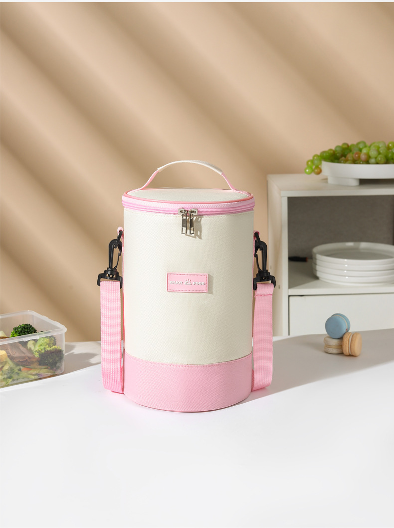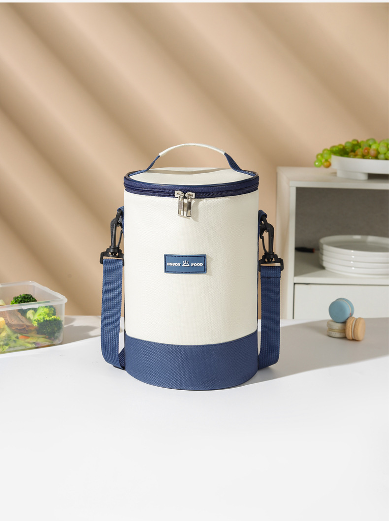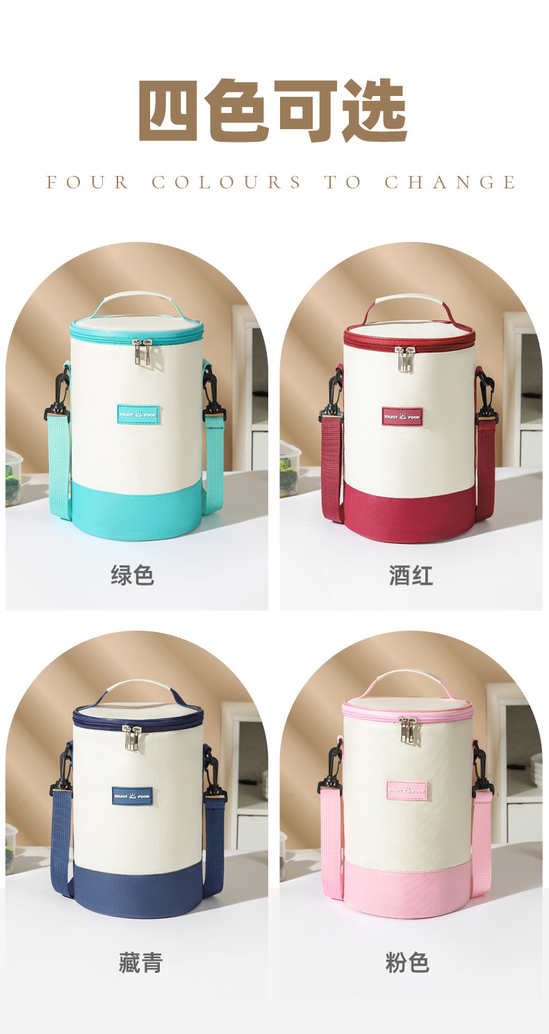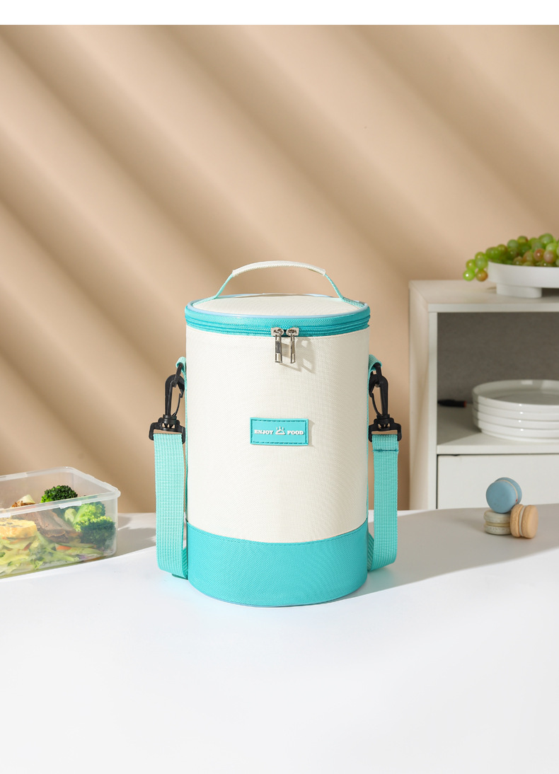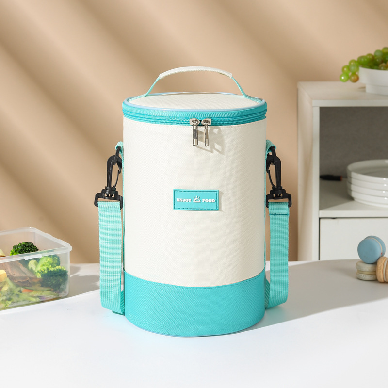 높은 가치의 라운드 버킷 도시락 가방 휴대용 도시락 가방 컬러 매칭 크로스 바디 단열 가방 작업 및 학교 도시락 가방스토어 가기