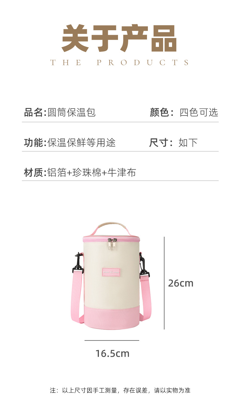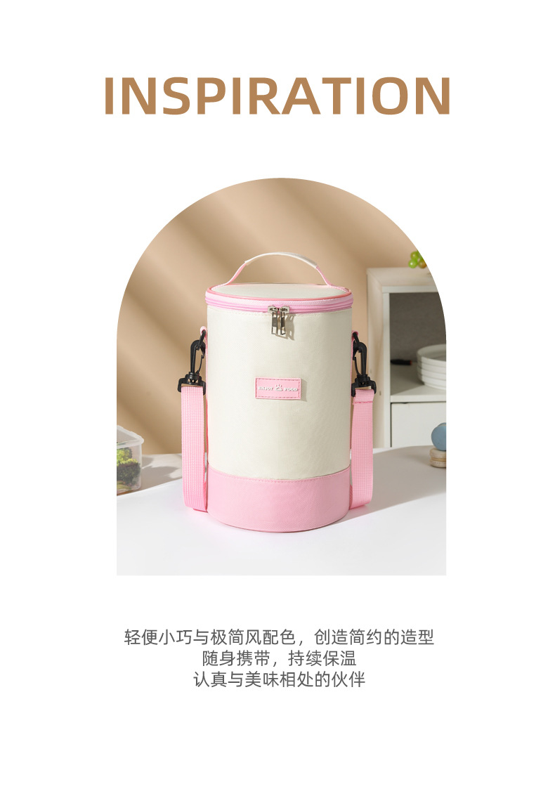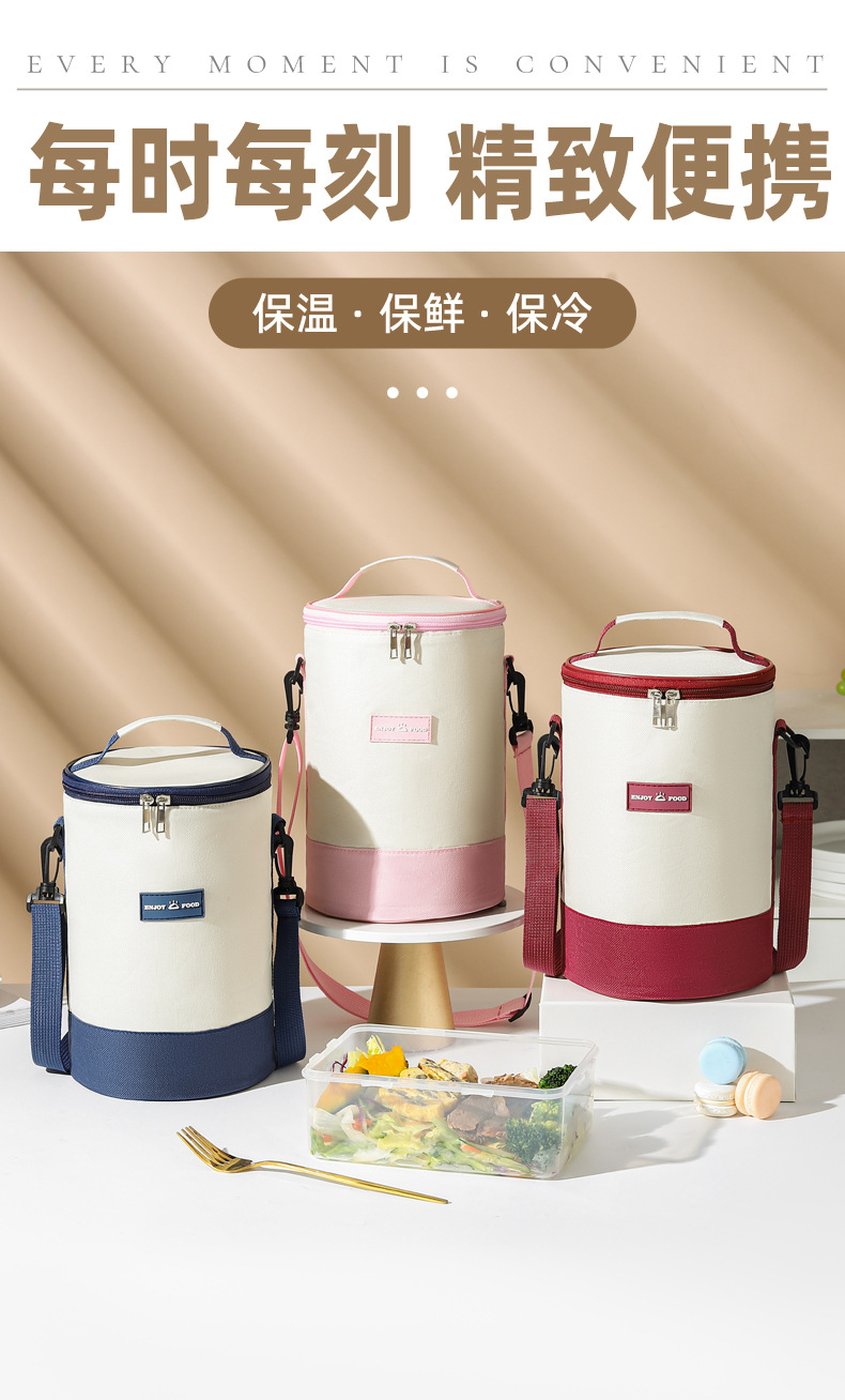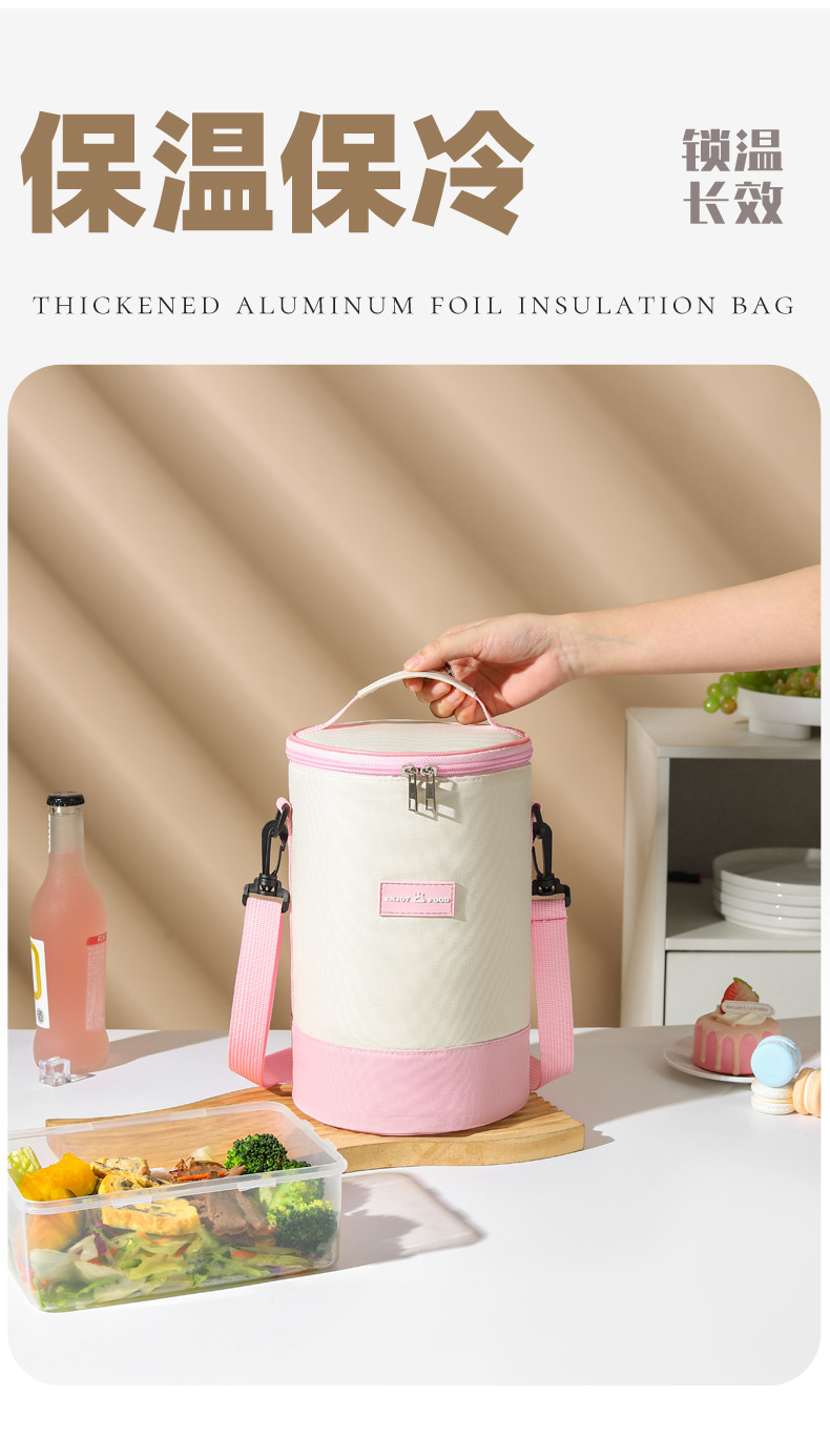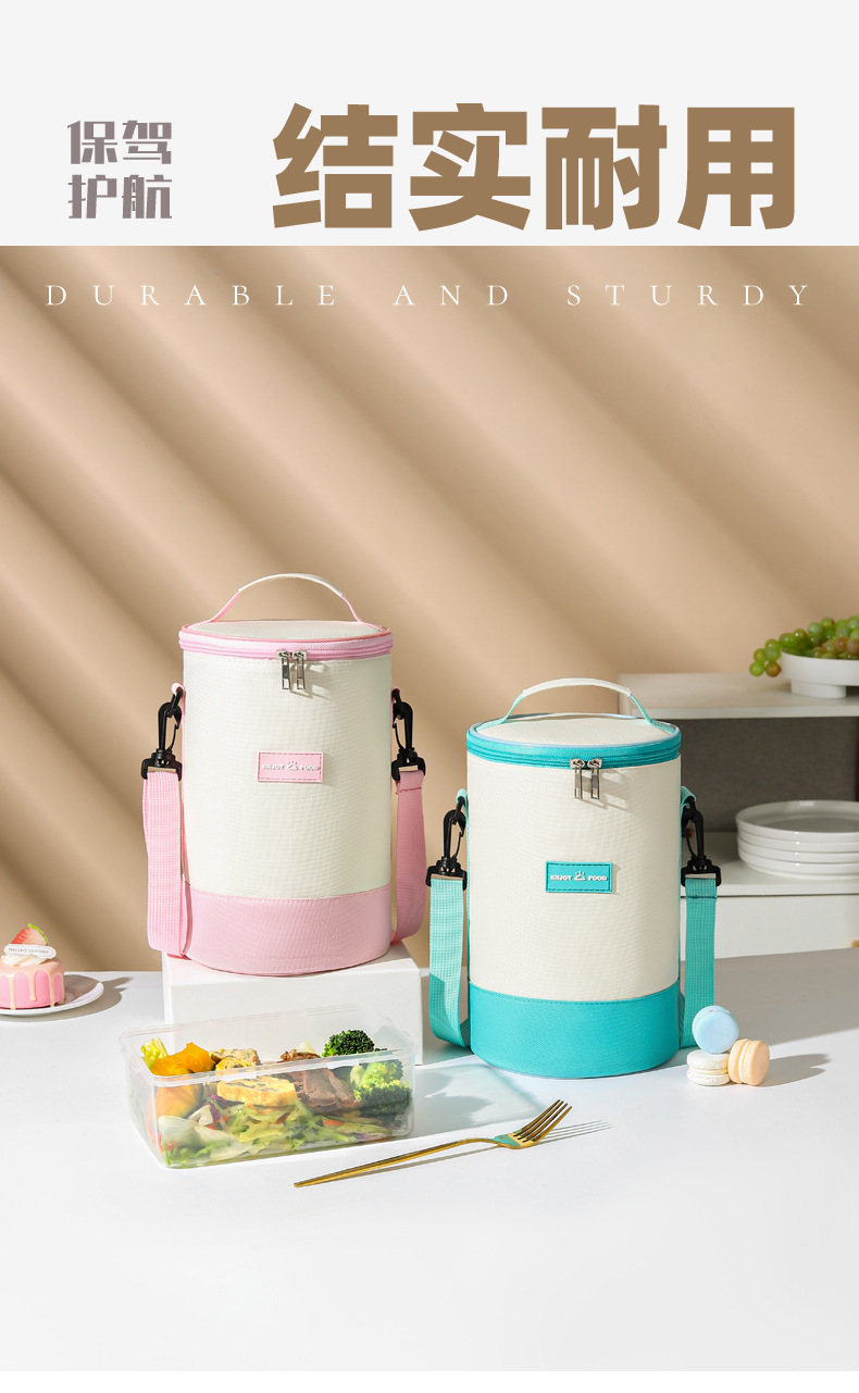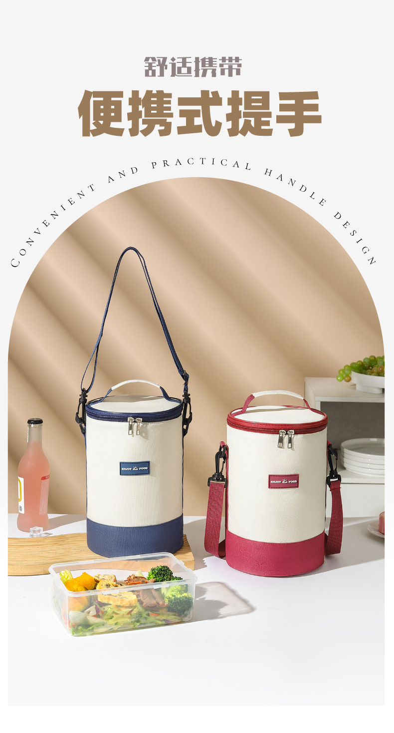 높은 가치의 라운드 버킷 도시락 가방 휴대용 도시락 가방 컬러 매칭 크로스 바디 단열 가방 작업 및 학교 도시락 가방스토어 가기