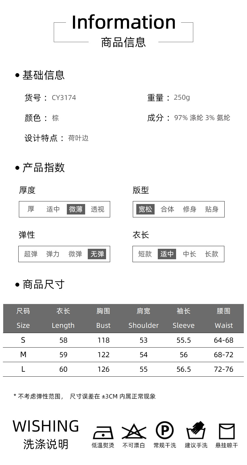 다크 브라운 쉬폰 작은 스탠드 칼라 주름 호른 소매 셔츠 2025 유럽과 미국의 봄과 여름 패션 새로운 국경 최고 여성