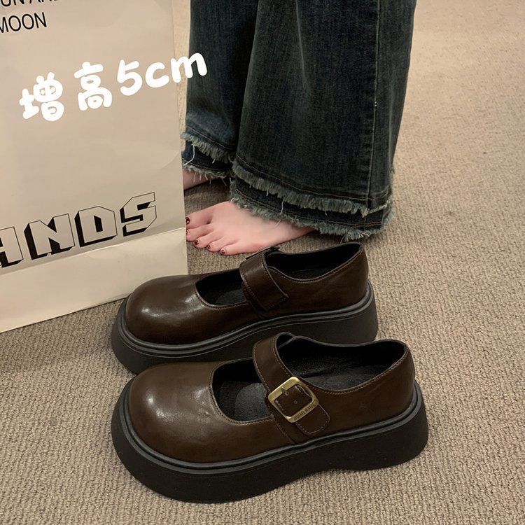 여성을위한 두꺼운 밑창 검은 색 펌프 작은 가죽 신발 2025 봄 여름 새로운 다목적 메리 제인 로퍼 스커트와 신발스토어 가기