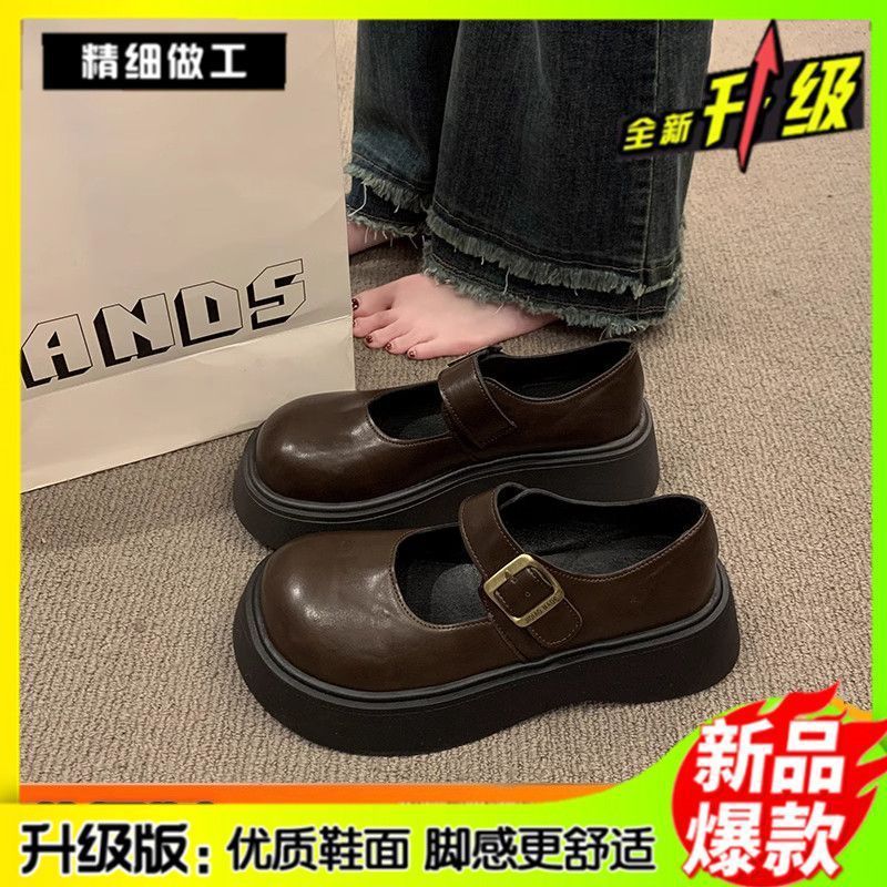 여성을위한 두꺼운 밑창 검은 색 펌프 작은 가죽 신발 2025 봄 여름 새로운 다목적 메리 제인 로퍼 스커트와 신발