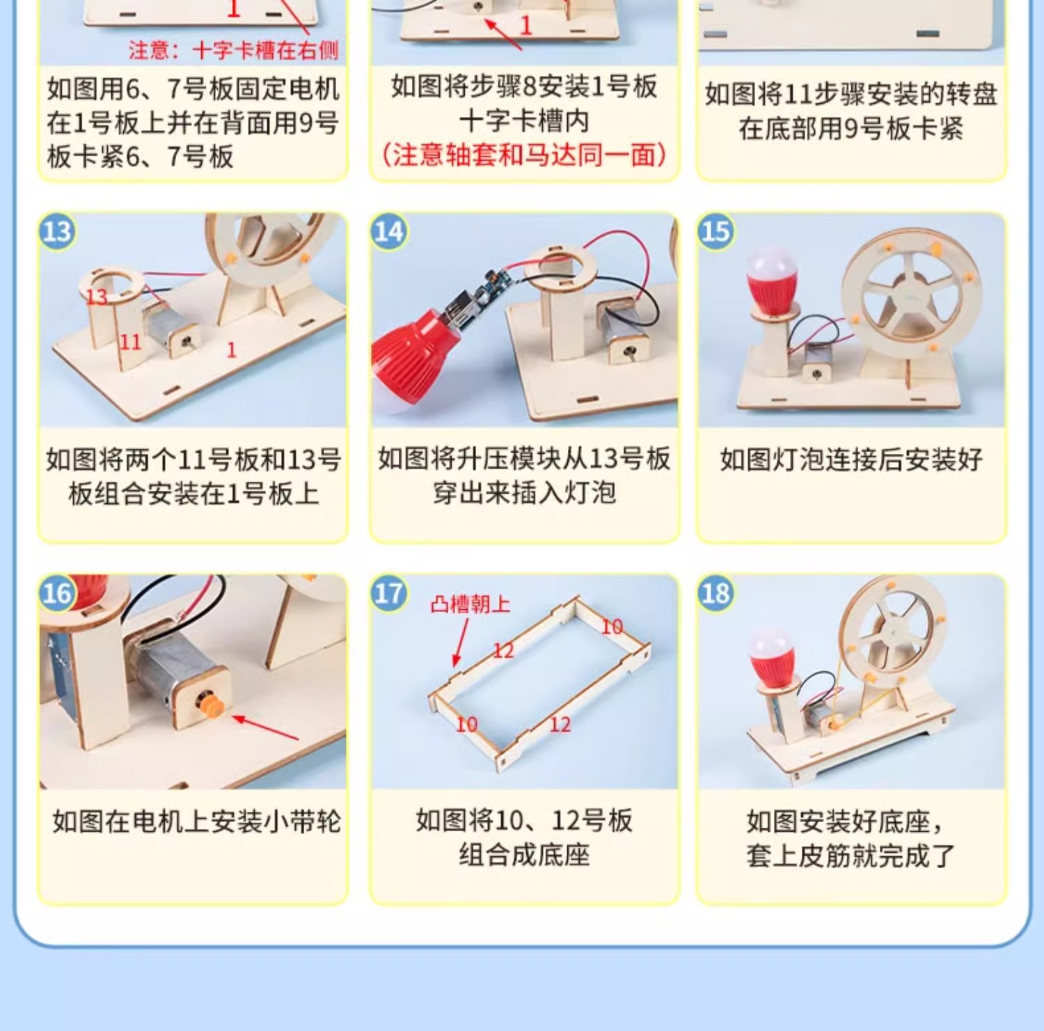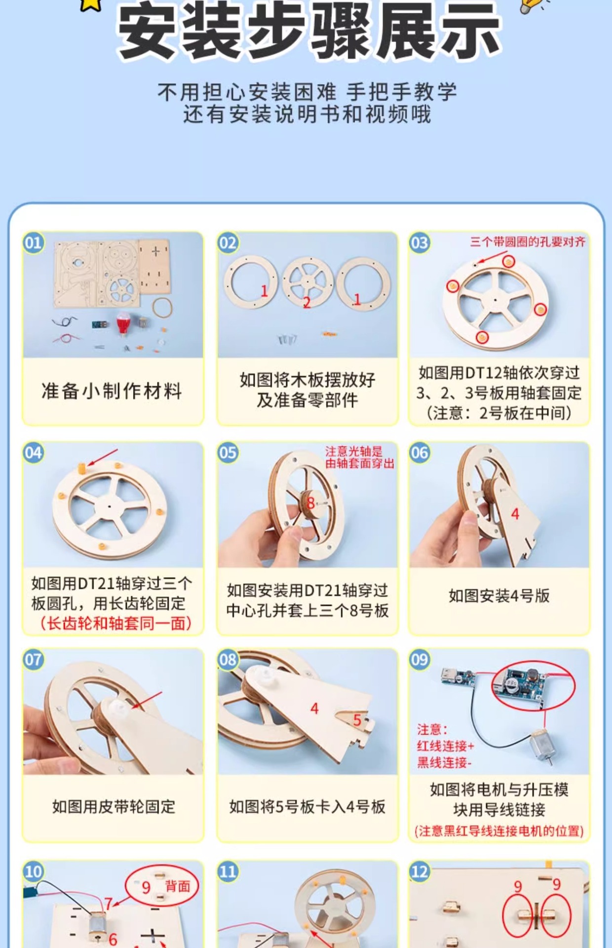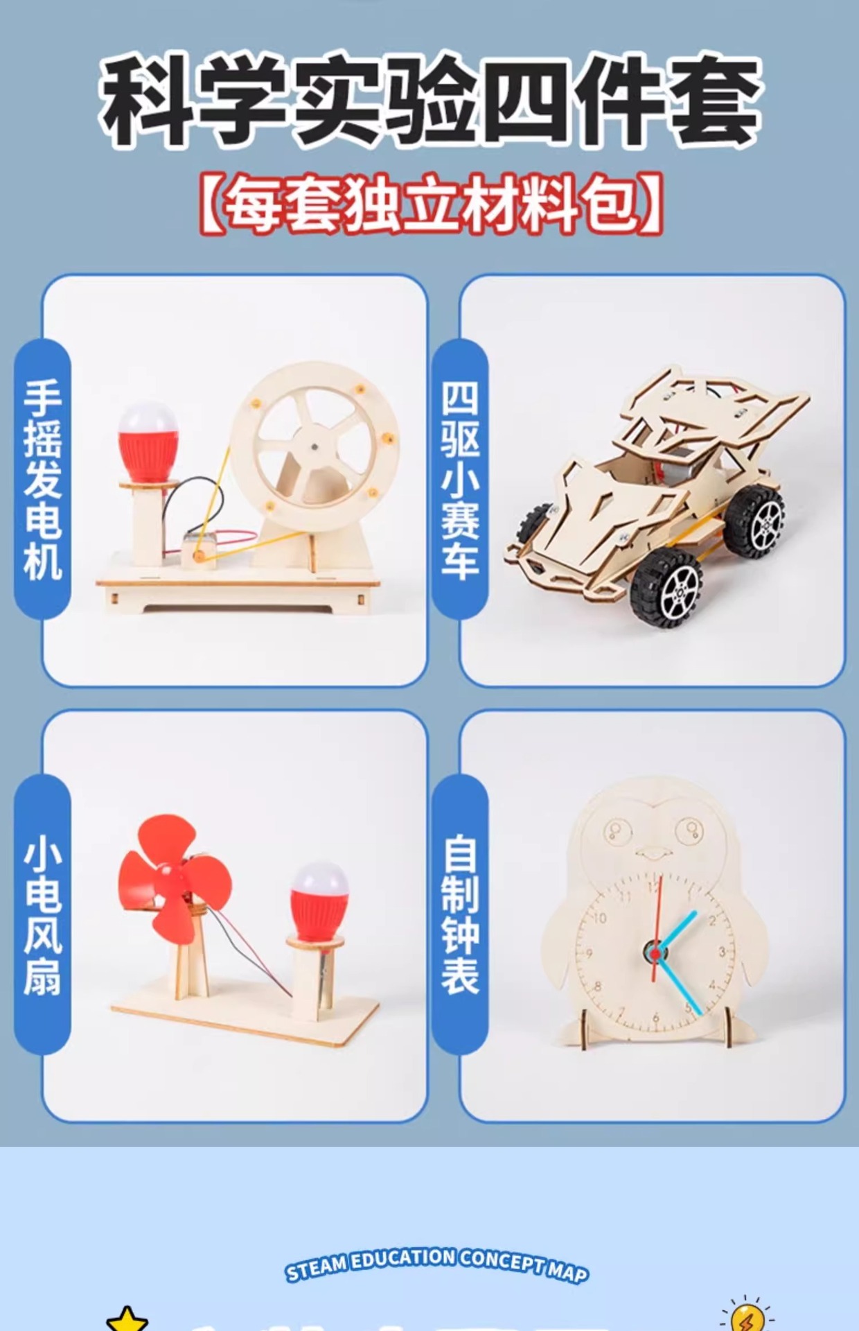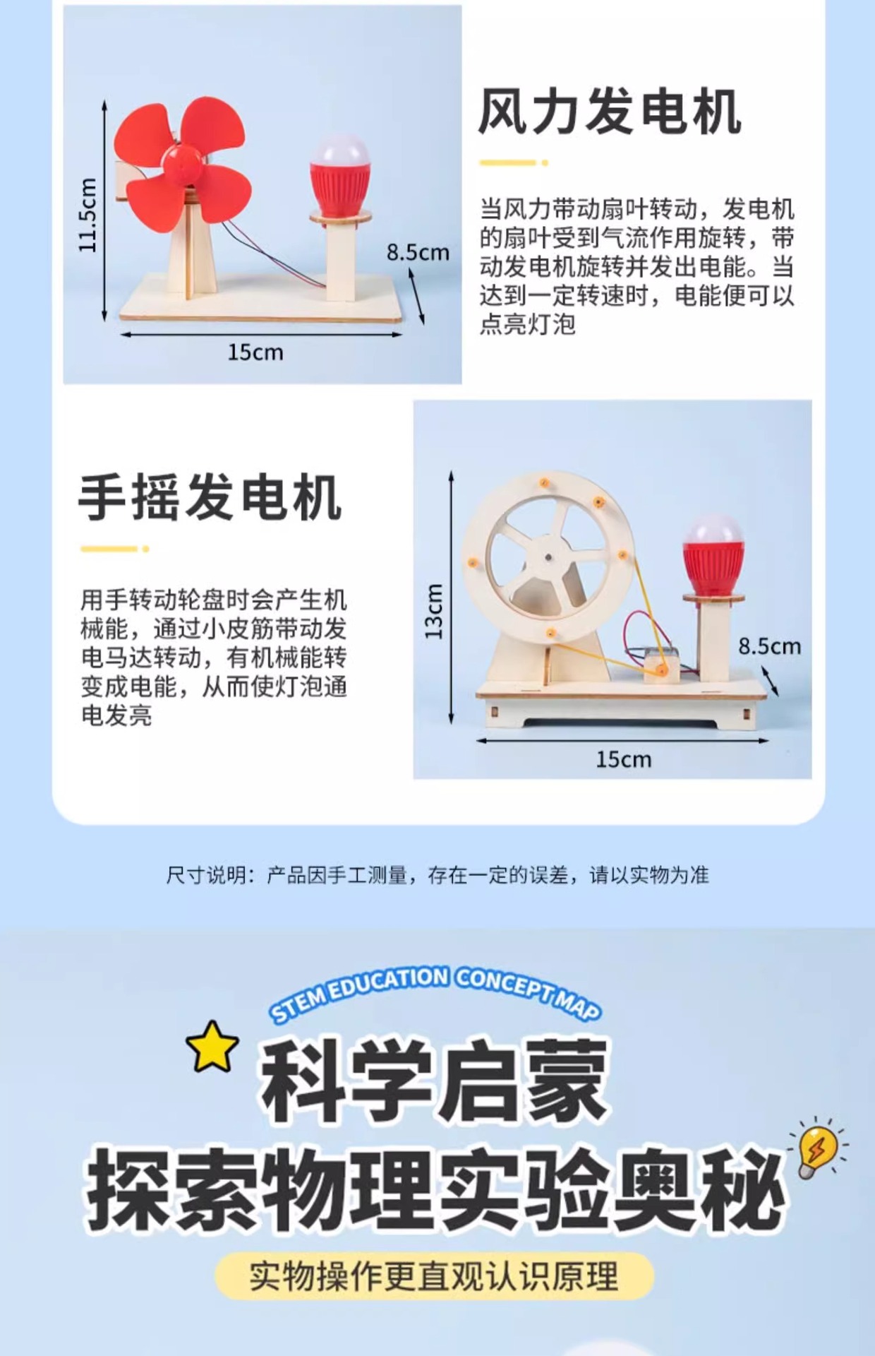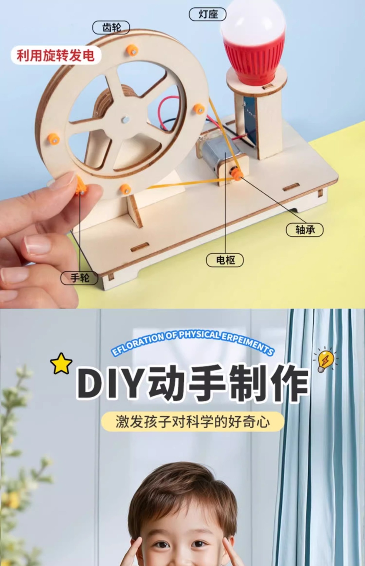 과학 작은 실험 세트 핸드 발전기 학생 과학 기술 발명 생산 diy 어린이 교육 수제 재료스토어 가기
