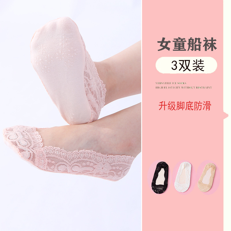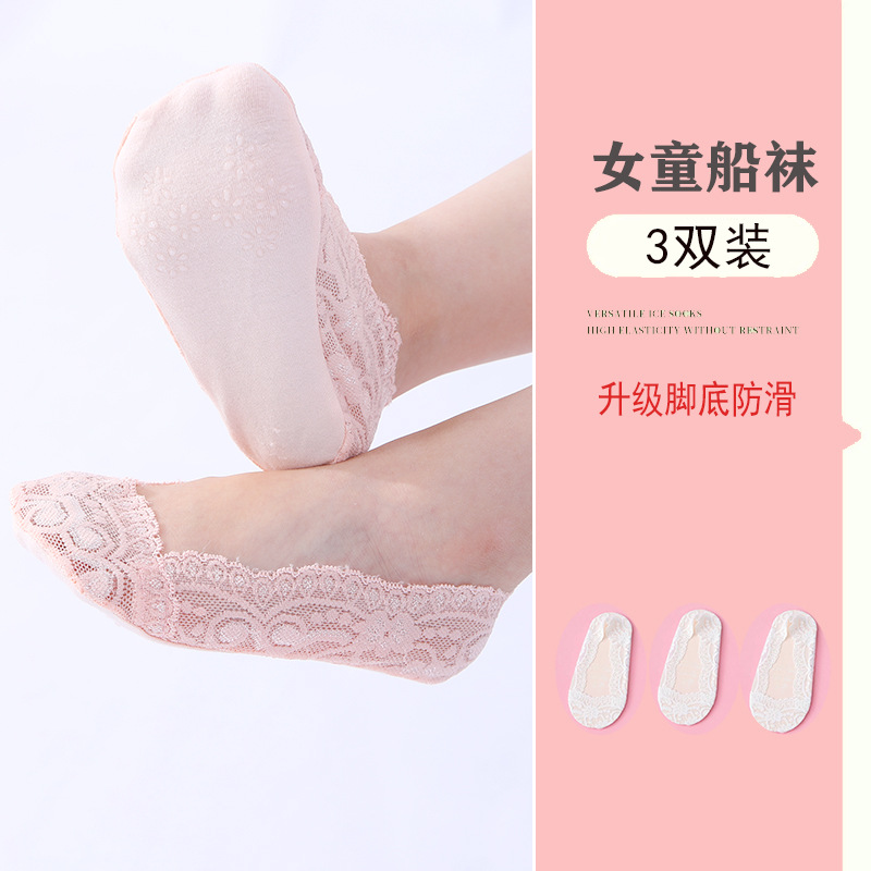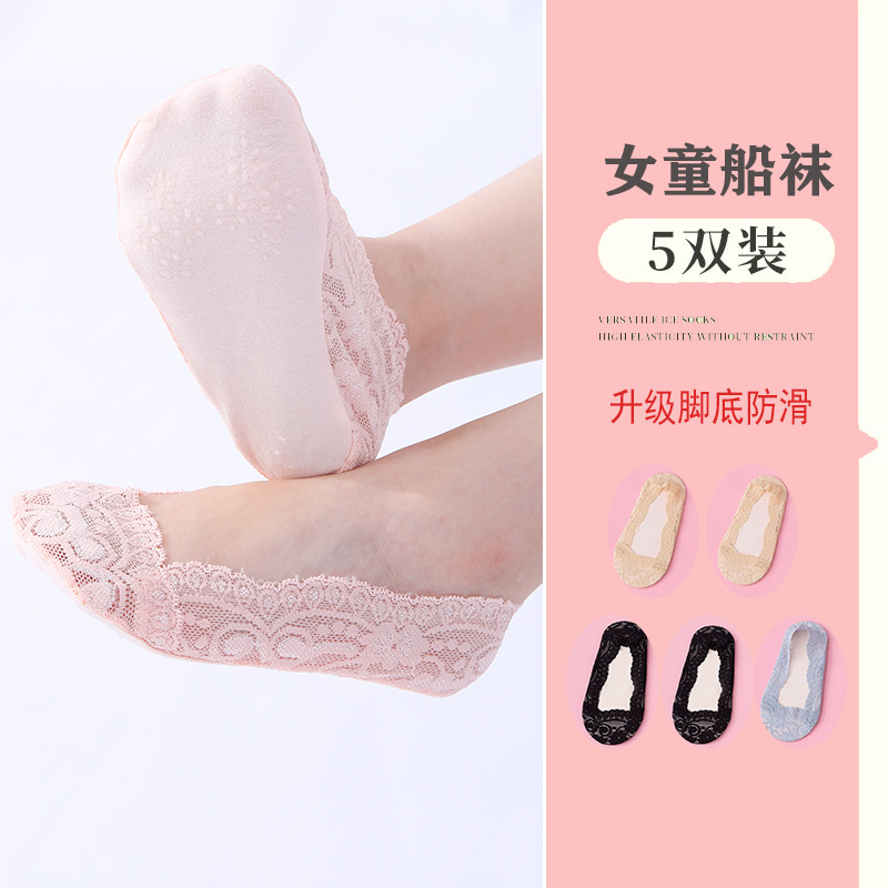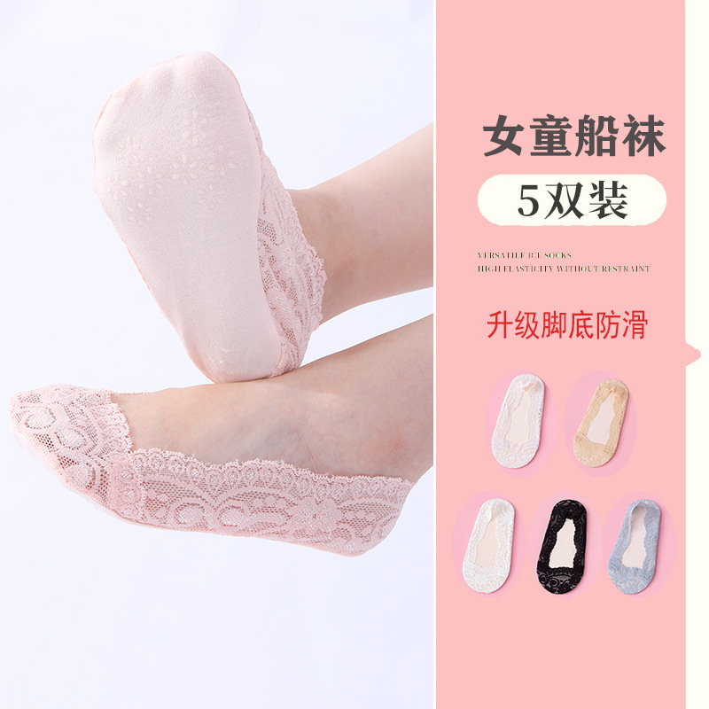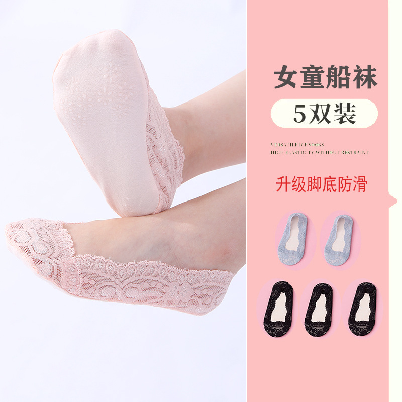 어린이 얕은 입 보이지 않는 보트 양말 여름 얇은 소녀 실리콘 미끄럼 방지 레이스는 귀여운 아기의 짧은 양말을 떨어 뜨리지 않습니다