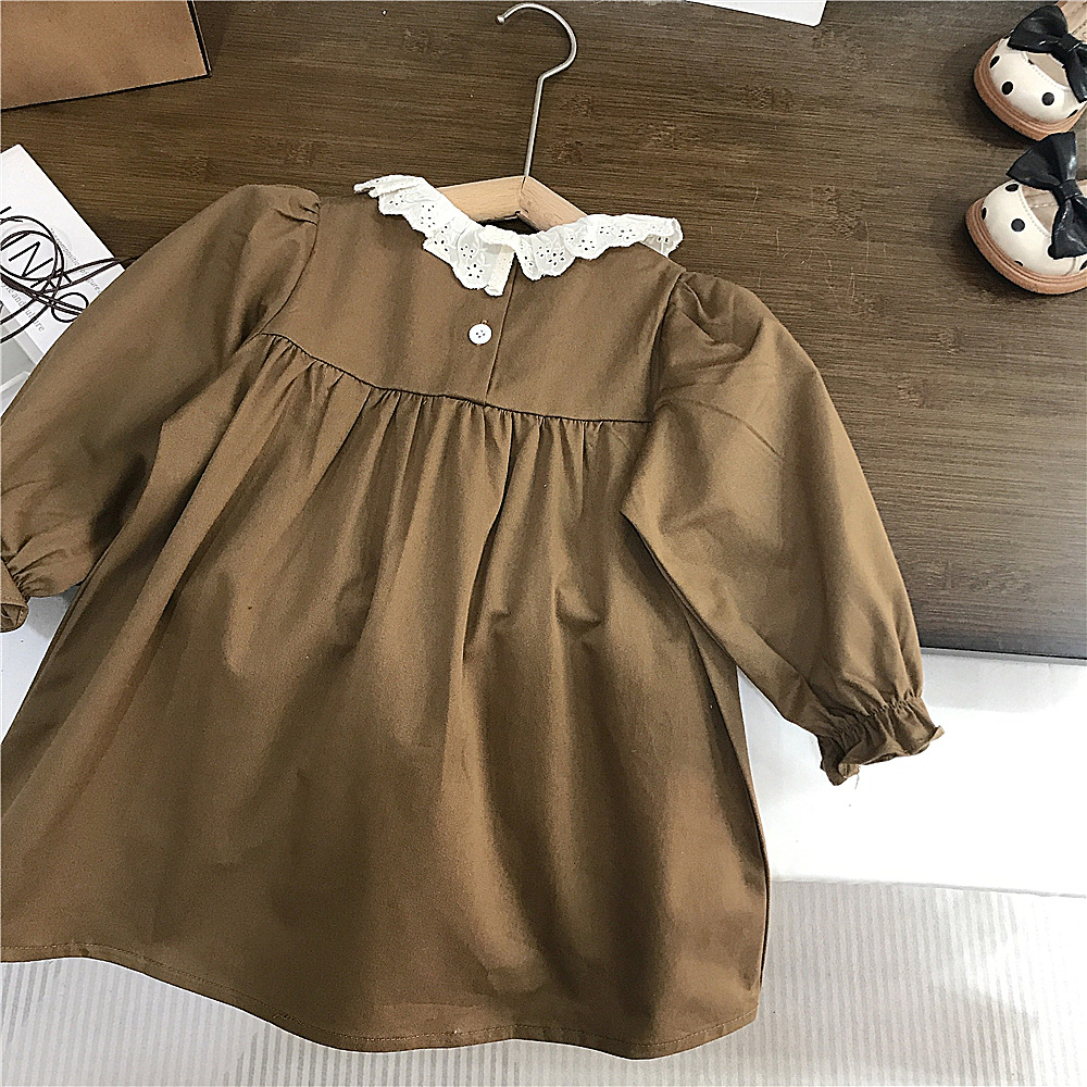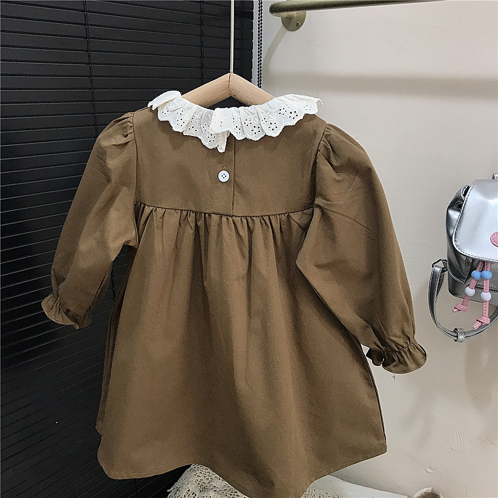 소녀의 봄 새로운 도착 원피스 한국 스타일 소녀 아기의 스타일 레이스 칼라 외출을 위해 긴 소매 공주 원피스 자수