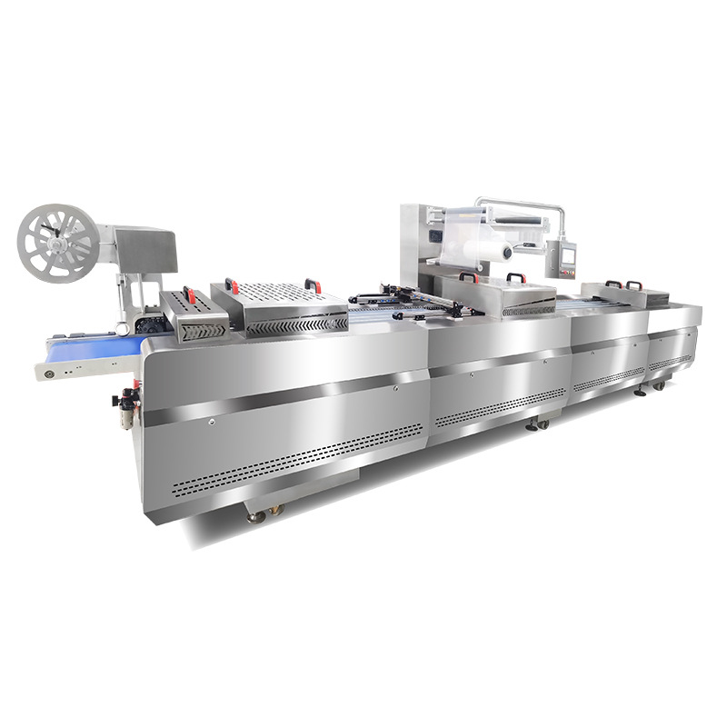 한약 황경 소시지 떡 매운 스트립 스트레치 필름 진공 포장기 완전 자동 진공 밀봉기 포장 장비스토어 가기