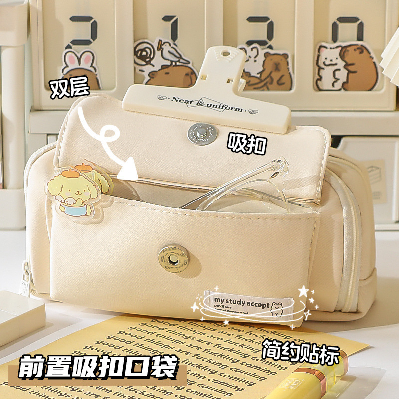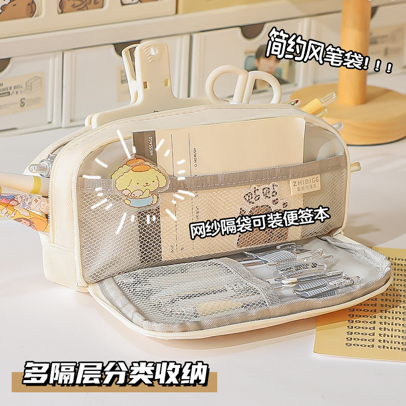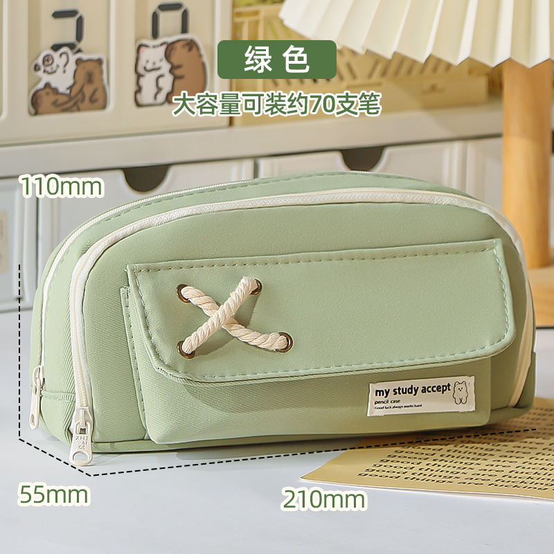 버튼 코튼 로프 연필 케이스 대용량 소녀 어린이 보관 가방 초등학교 문구 케이스 중학교 여자 연필 케이스스토어 가기