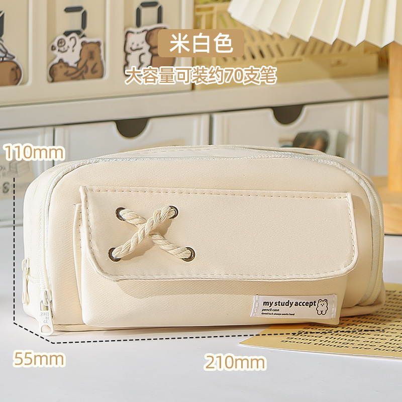 버튼 코튼 로프 연필 케이스 대용량 소녀 어린이 보관 가방 초등학교 문구 케이스 중학교 여자 연필 케이스