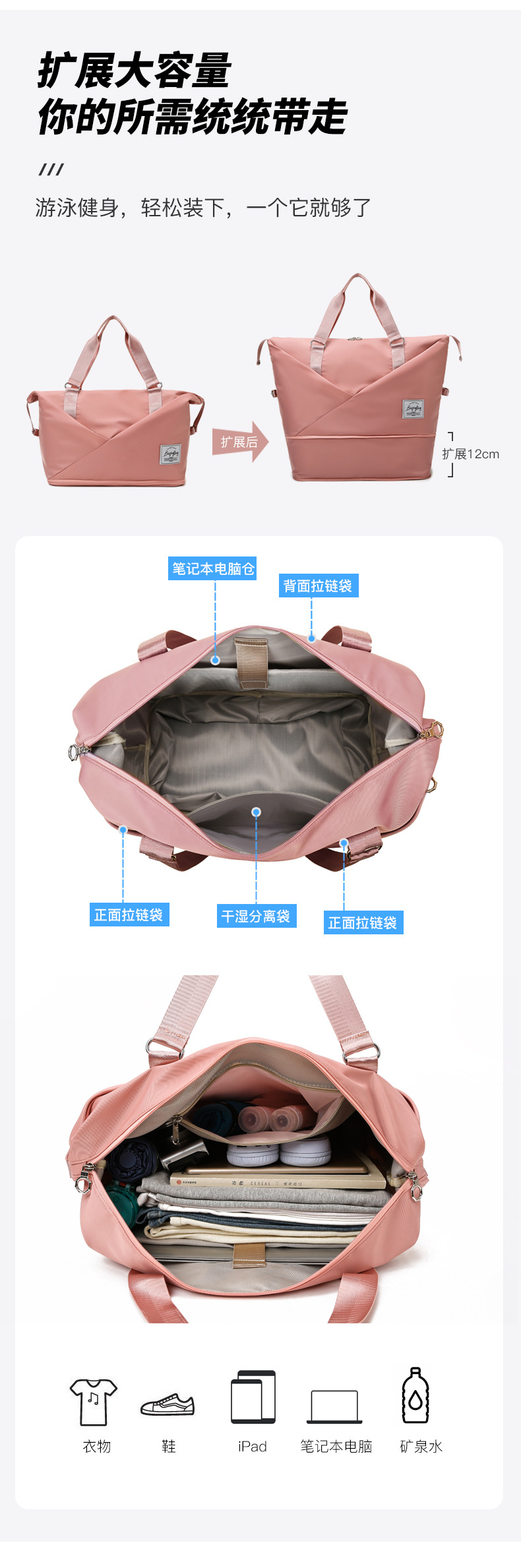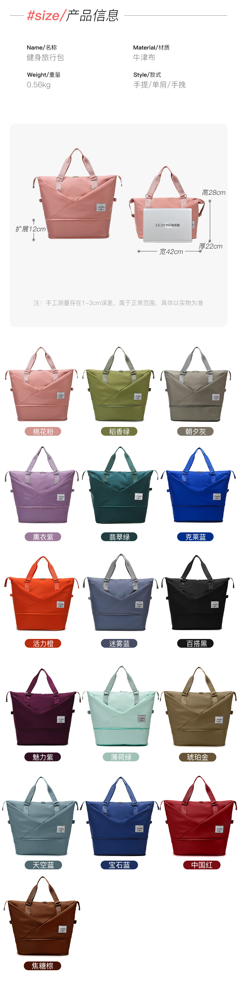 여성용 스포츠 및 피트니스 가방, 습식 및 건식 분리 신발 트레이닝 요가 가방, 대용량 휴대용 수하물 가방, 야외 여행 가방