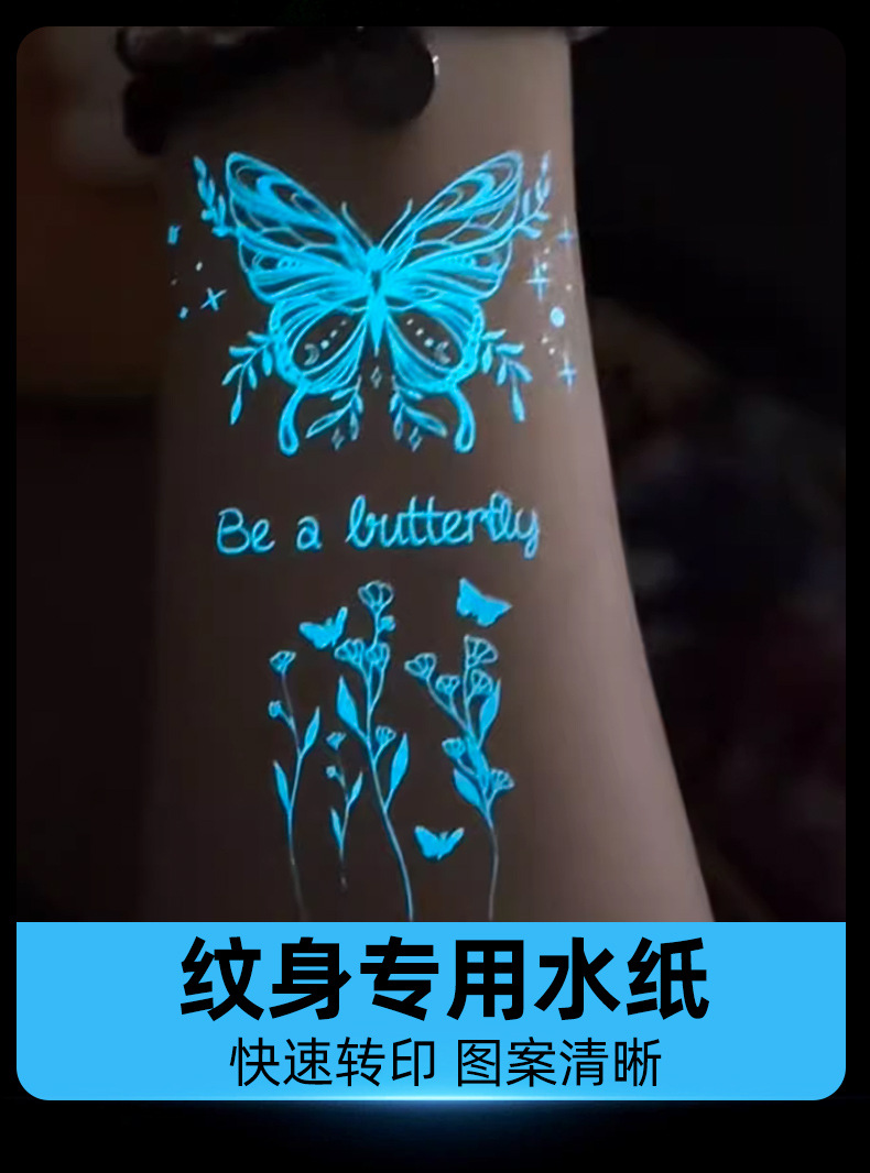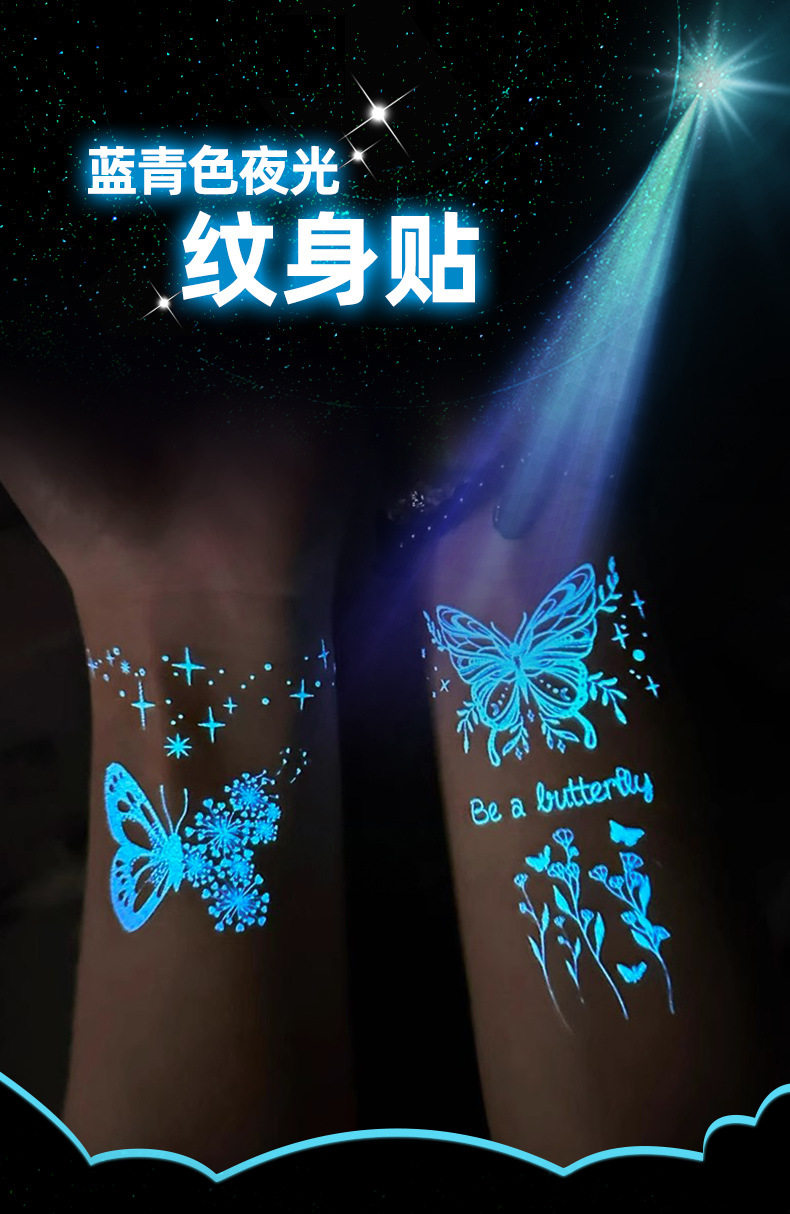 새로운 헤나 나비 블루 빛나는 문신 스티커 아름다운 얼굴 스티커 팔 Collarbone 다리 스티커 장식 여성