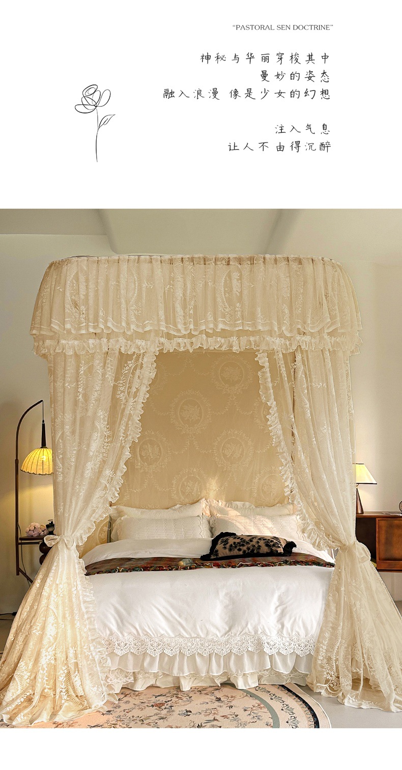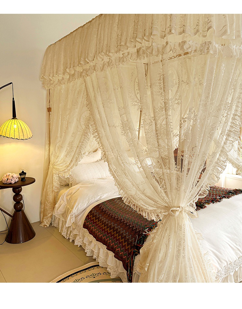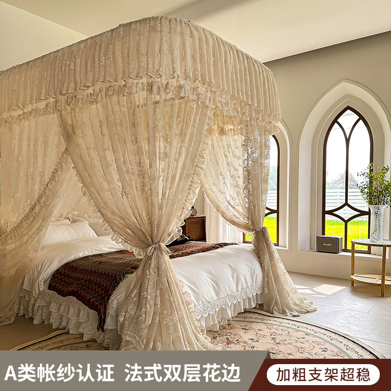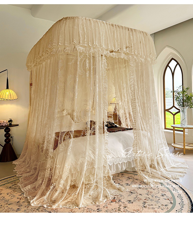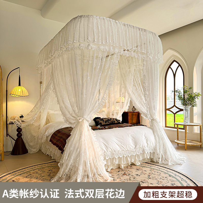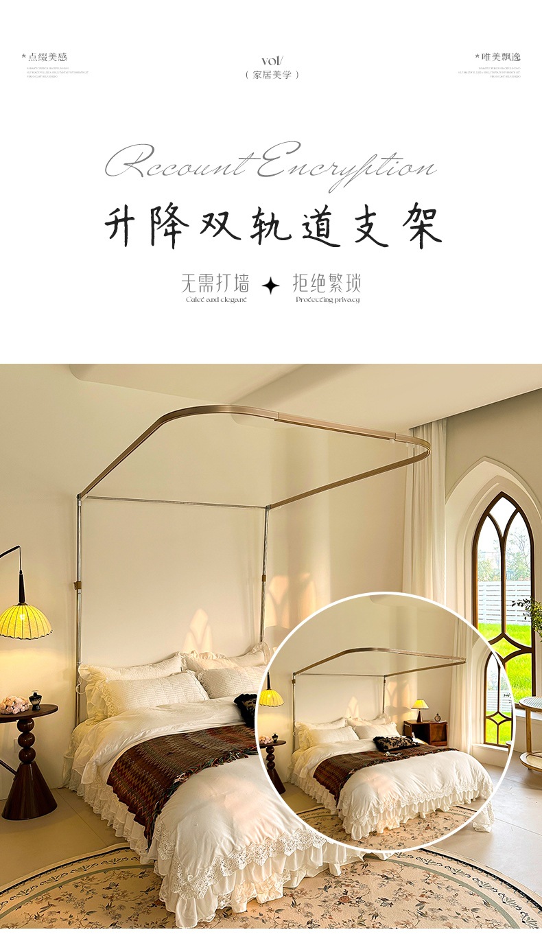 가이드 웨이 모기장 홈 침실 궁전 U 자형 트랙 유니버설 고급 플로어 스탠딩 셰이딩 패턴 2025 새로운 침대 커튼스토어 가기