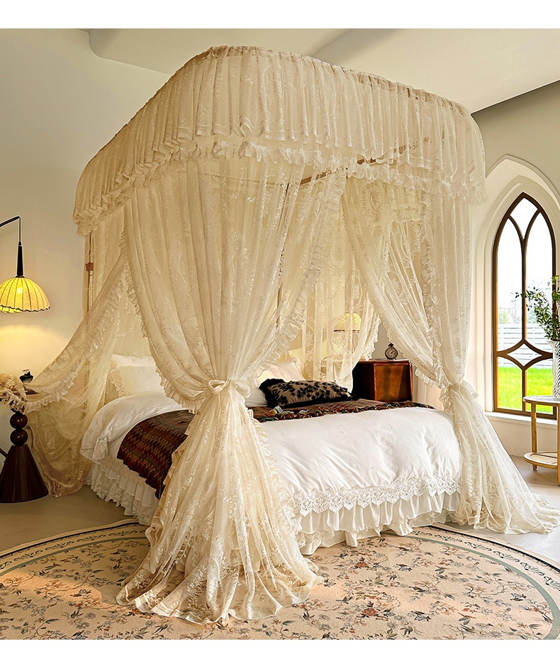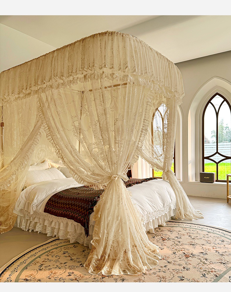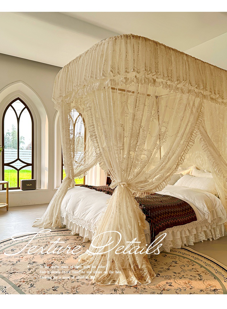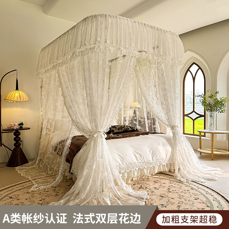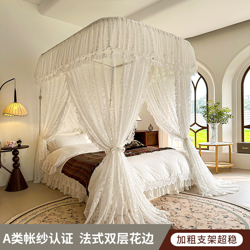 가이드 웨이 모기장 홈 침실 궁전 U 자형 트랙 유니버설 고급 플로어 스탠딩 셰이딩 패턴 2025 새로운 침대 커튼