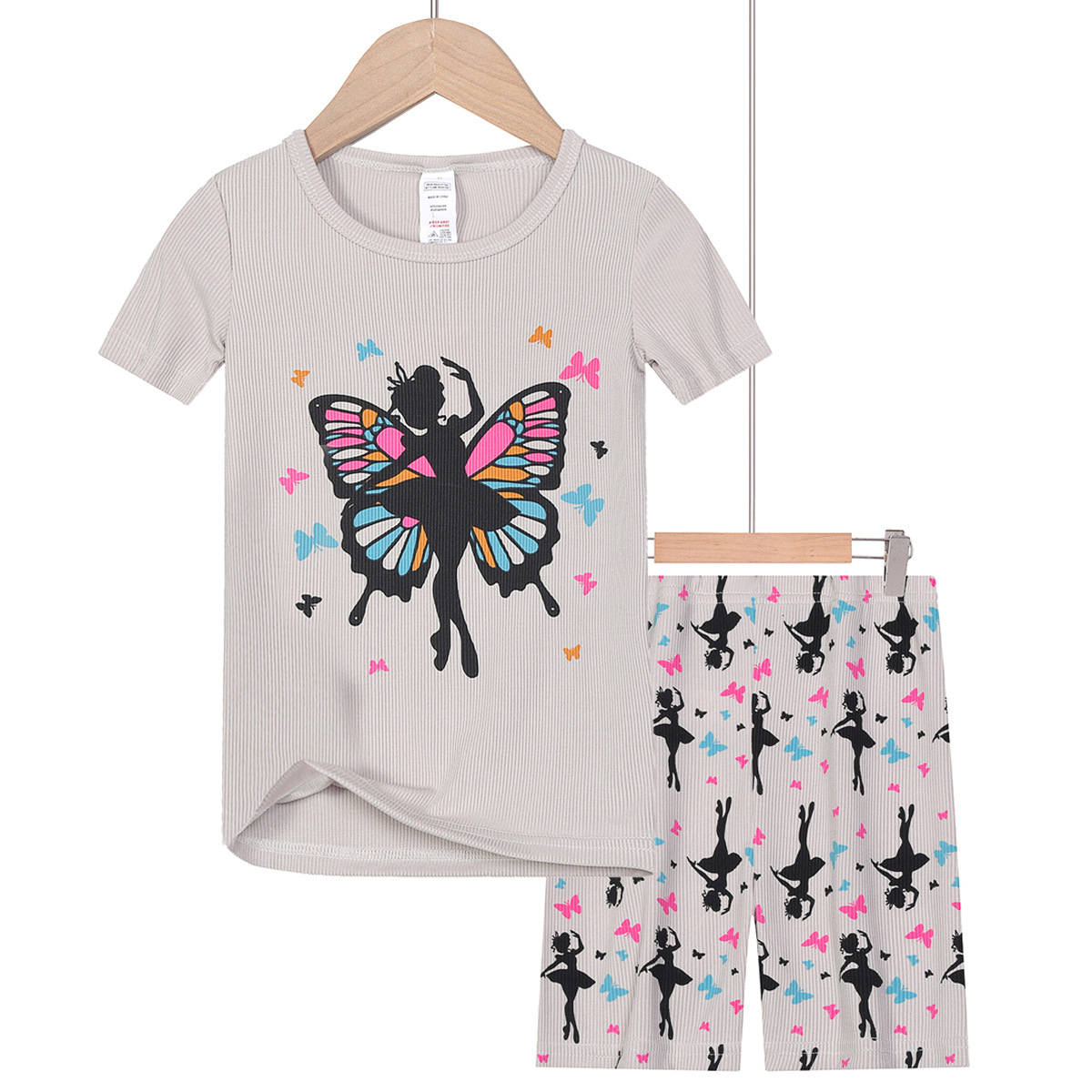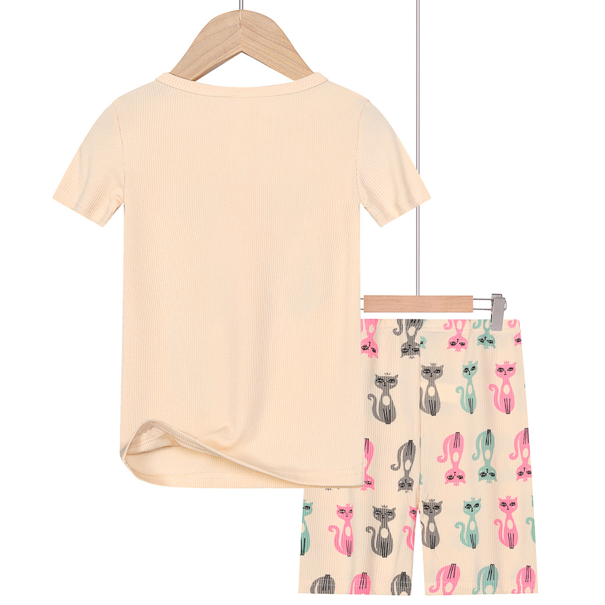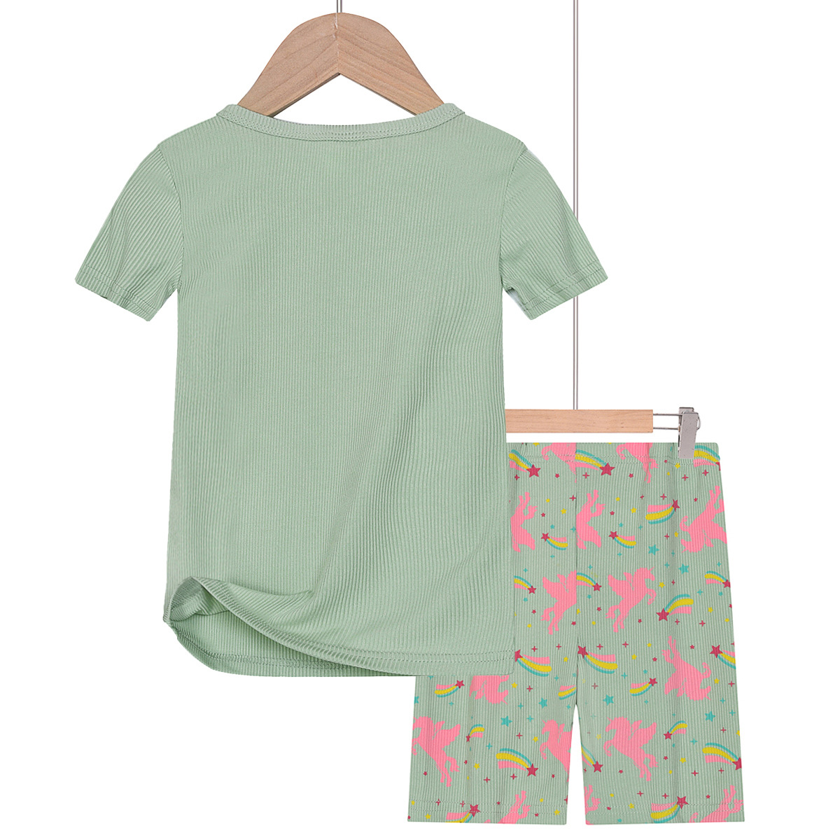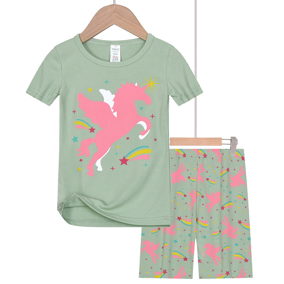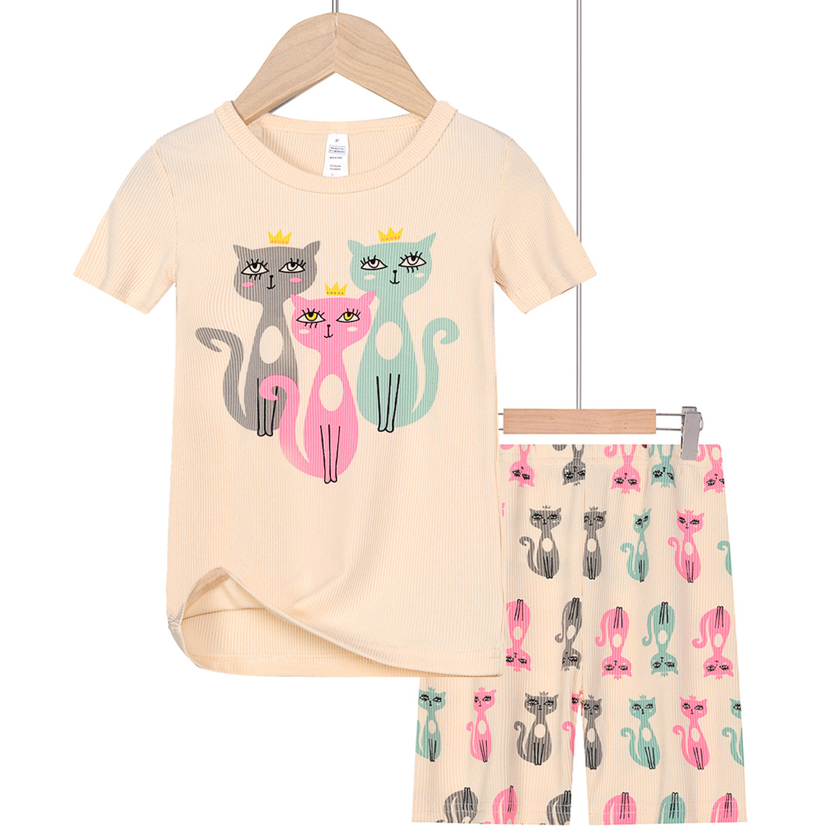타이트한 고탄성 스레드 소녀 반팔 반바지 홈웨어 잠옷 세트 만화 크로스보더 플랫폼 공장 도매스토어 가기