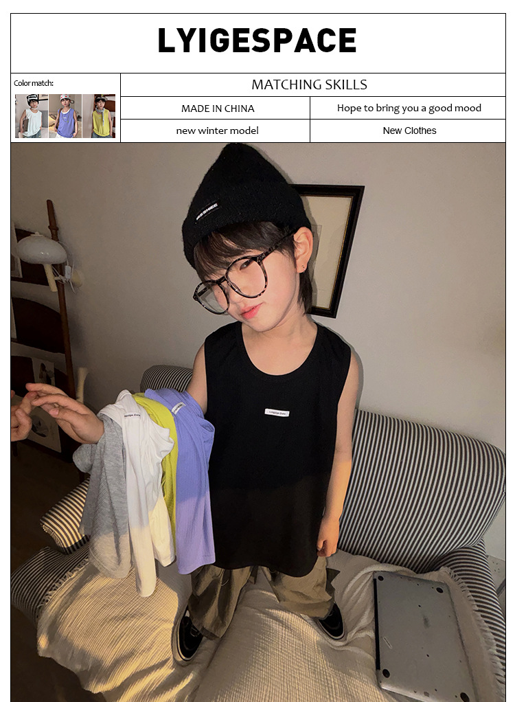 이홍 의류 소년 다색 조끼 2025 년 여름 신예 소년 얇은 스트레치 민소매 셔츠 한국식 런닝볼륨스토어 가기